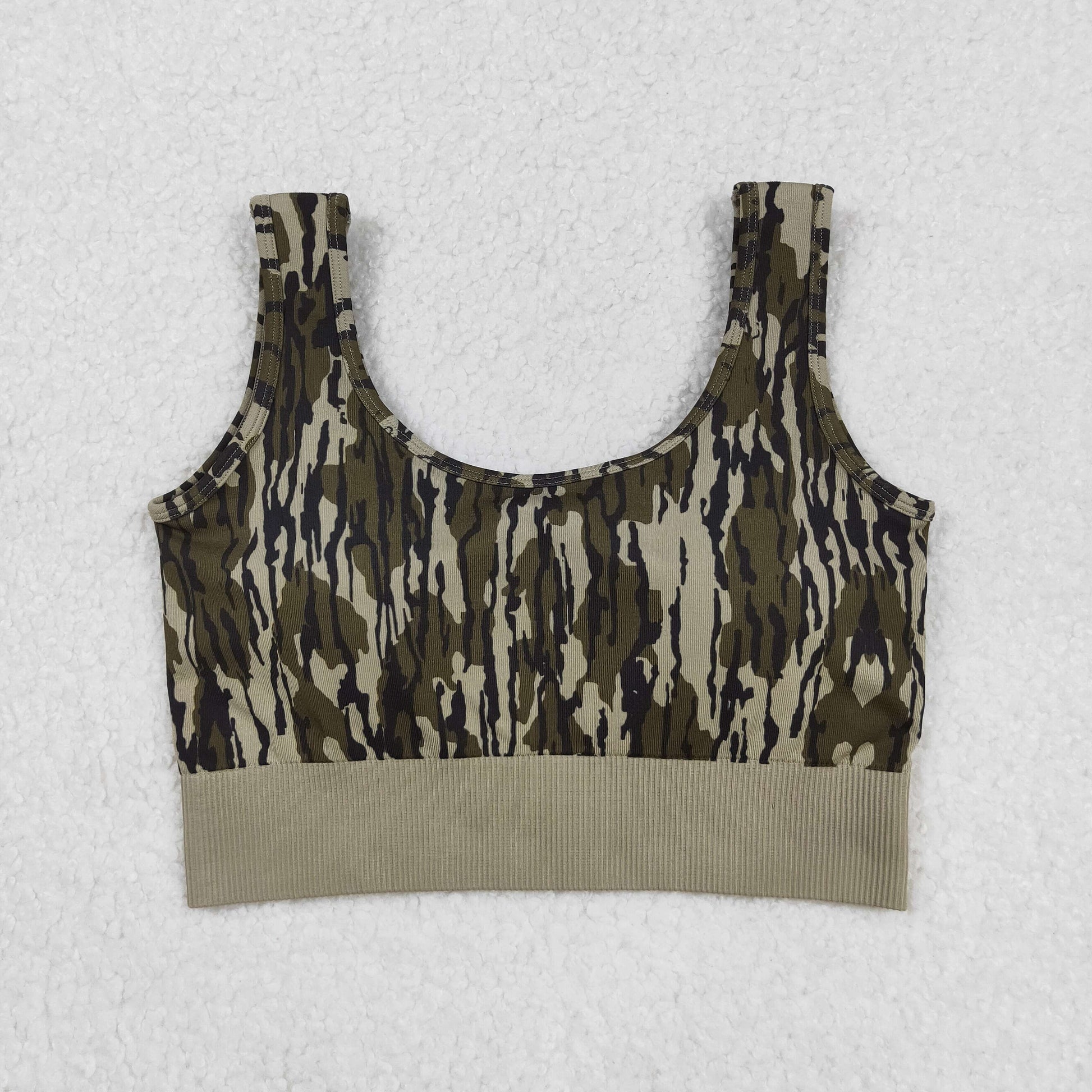 Adult Woman Sleeveless Green Camo Knitted Yoga Tank Tops RTS