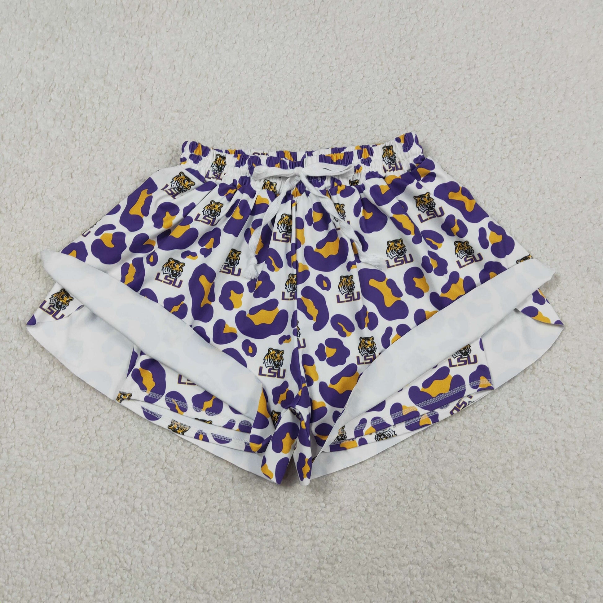 Adult Women Purple Leopard Tigers Team Yoga Active Ruffle Shorts Bottom RTS