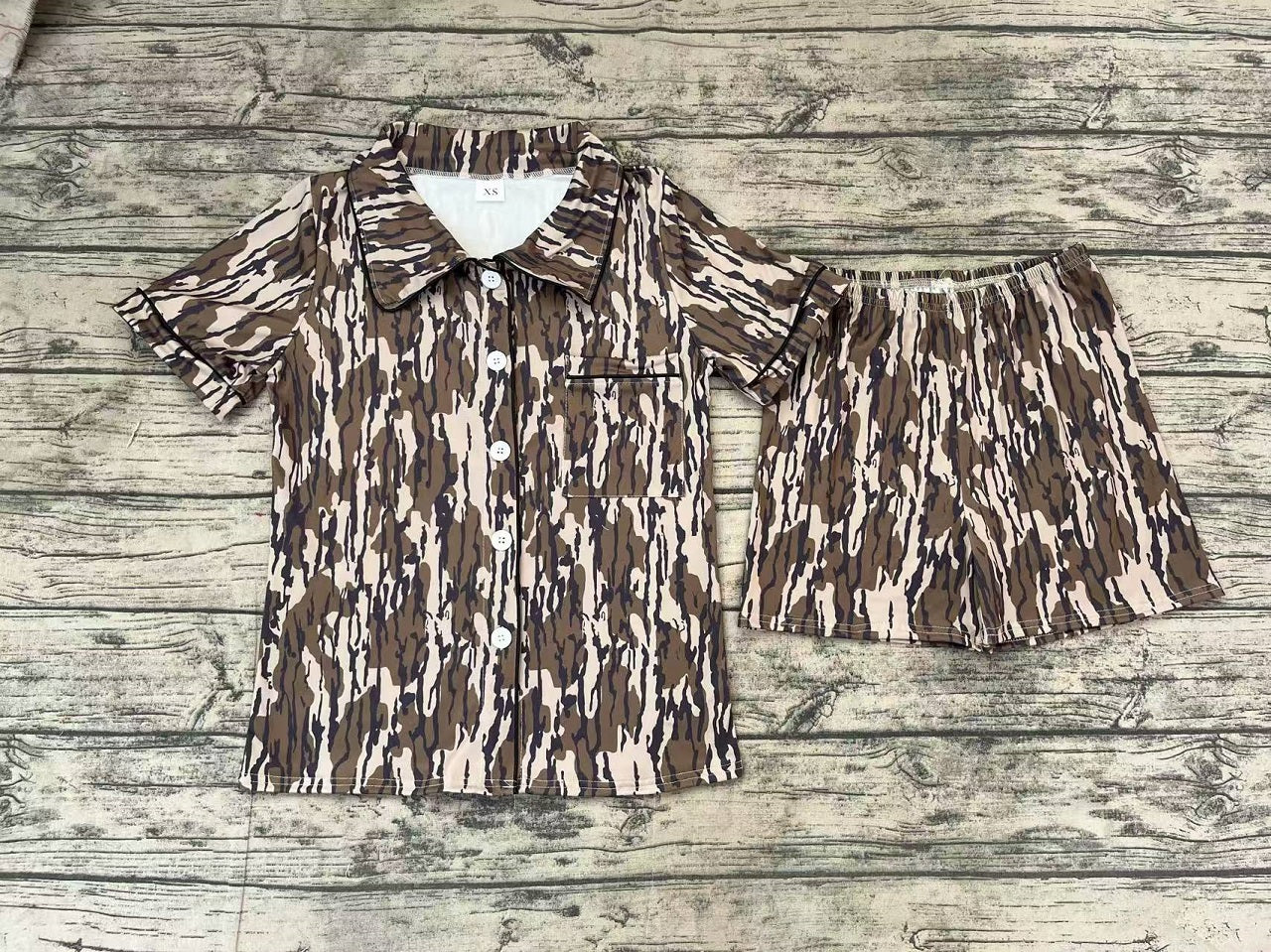 Adult Women Short Sleeves Camo Buttons Tops Shorts Pajamas Set