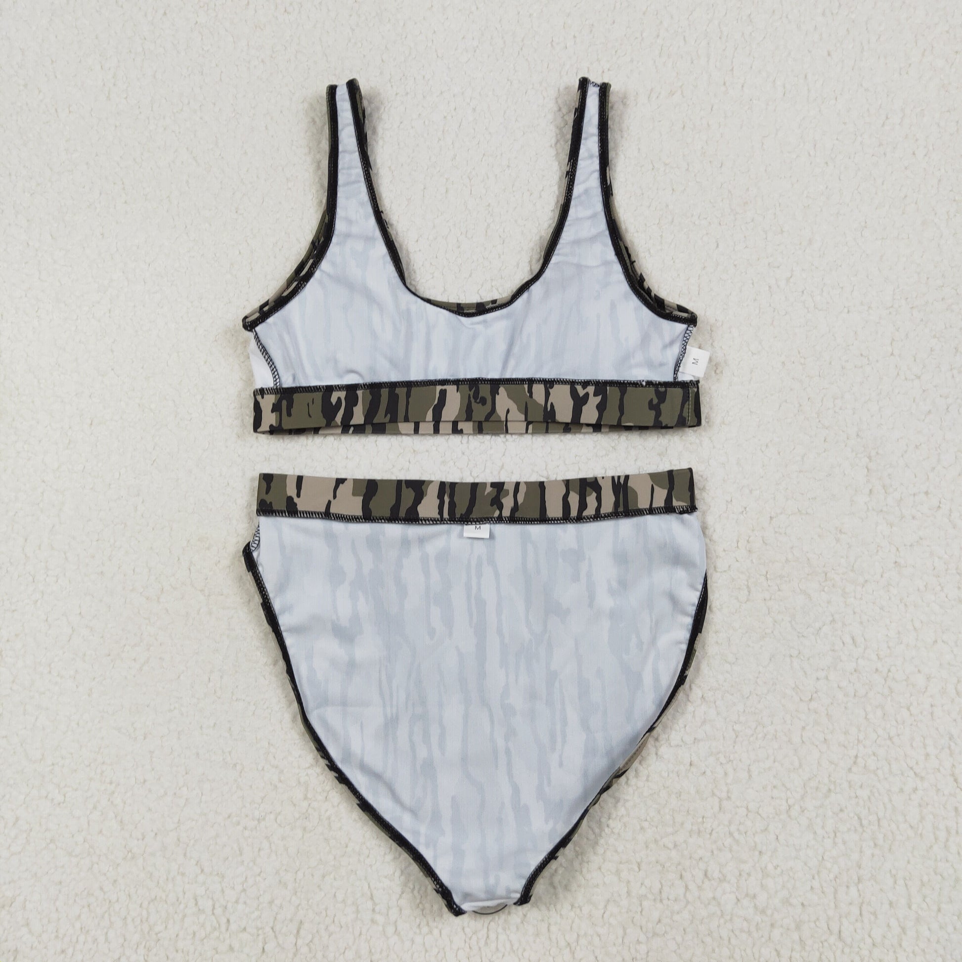 Adult Women Sleeveless Camo Tops Shorts Swimsuit Set RTS