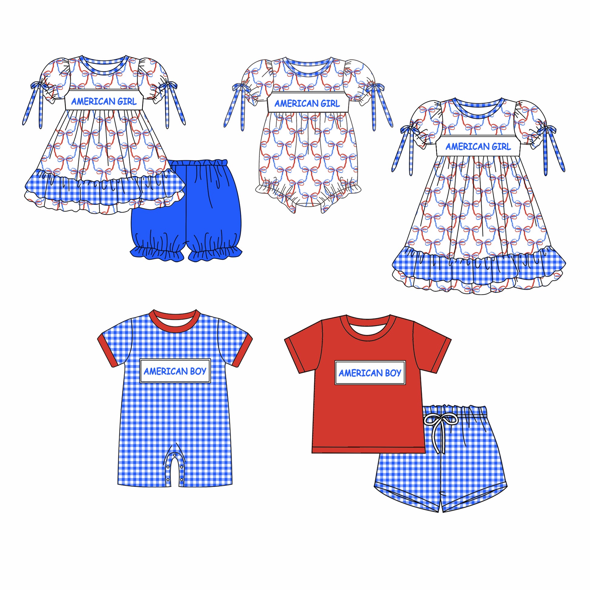 American Boy Girl July 4th Bows Sibling Dress Romper Clothes Set ( Moq 5 Each style )11.25