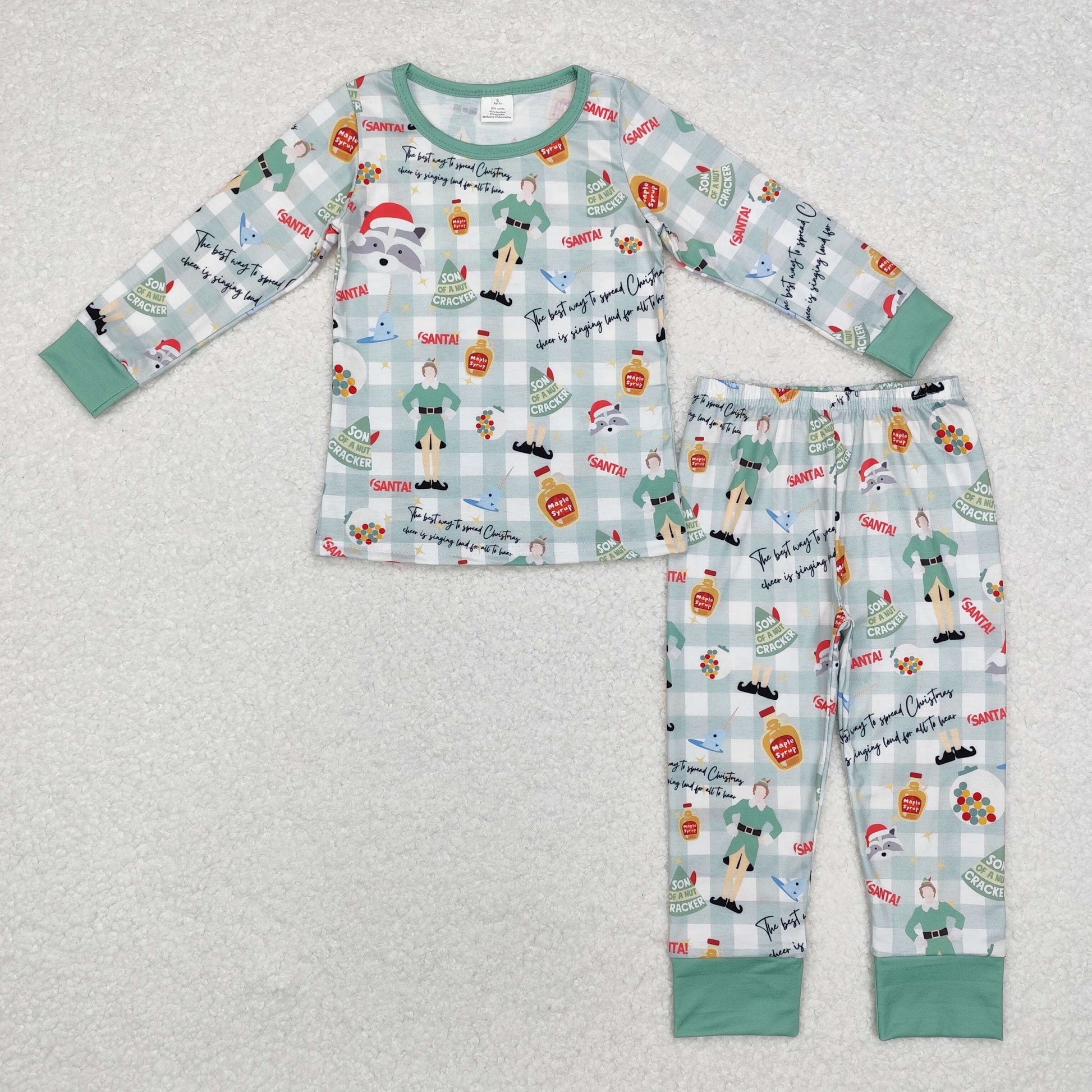 Baby Boy Christmas Checkered Green Pants Pajamas Bamboo Set