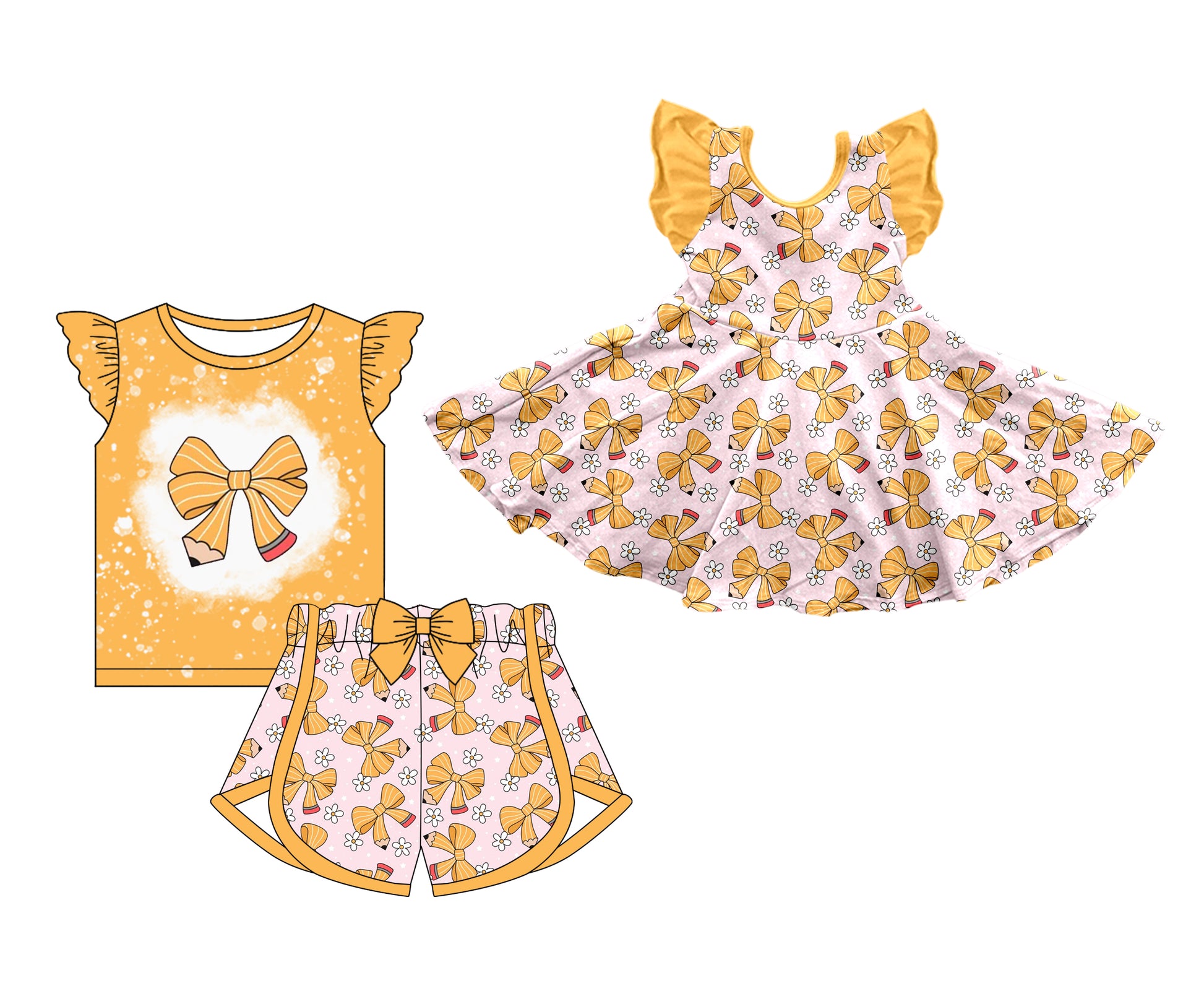 Baby Boy Girl Back To School Pencil Bows Sibling Dress Clothes Set ( Moq 5 Each style ) 11.30