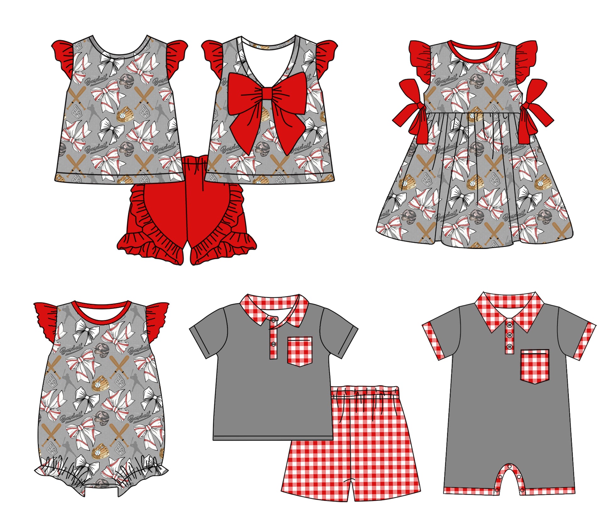 Baby Boy Girl Baseball Bows Sibling Dress Romper Clothes Set ( Moq 5 Each style )11.30