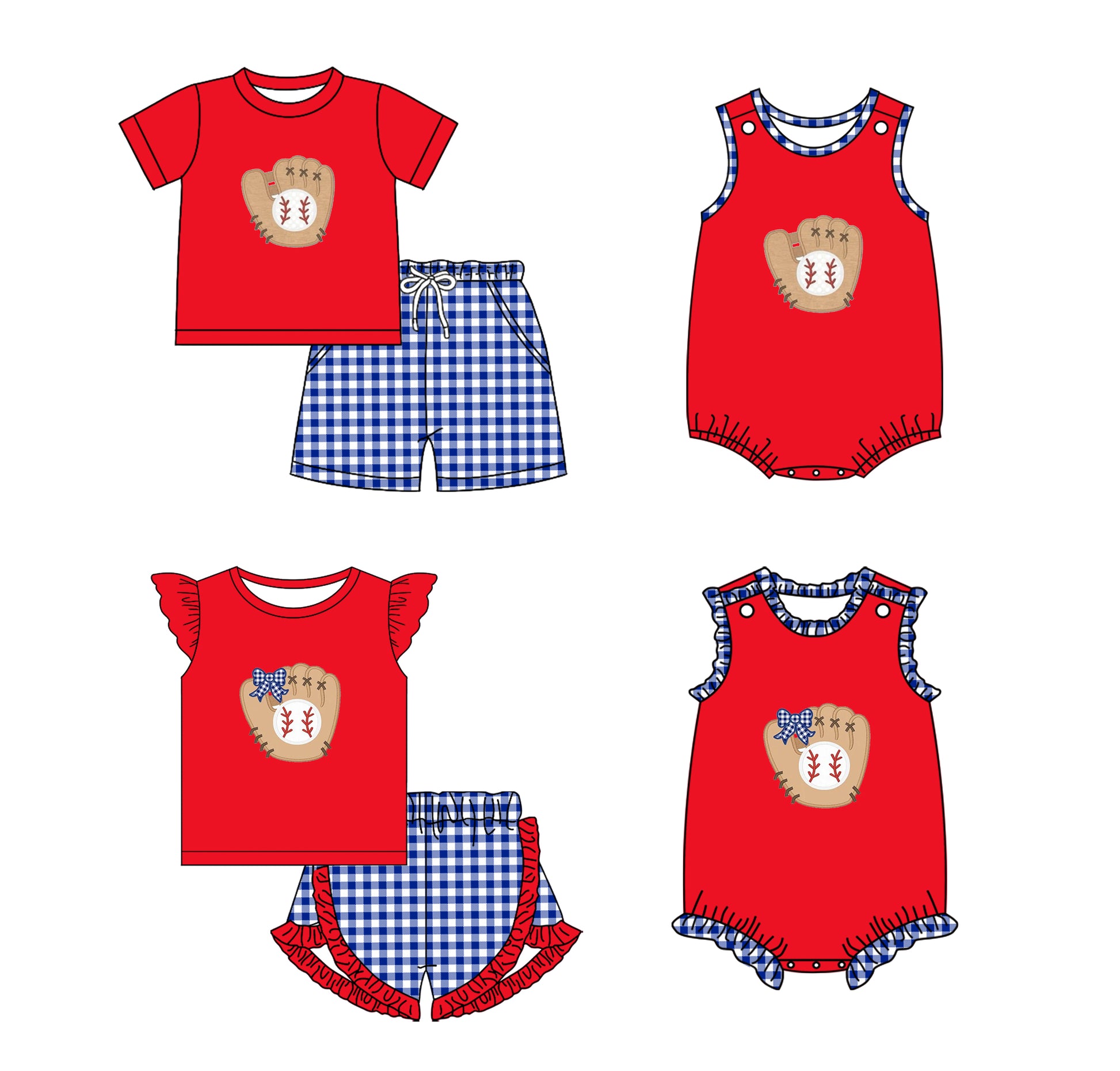Baby Boy Girl Baseball Plaid Sibling Dress Romper Clothes Set ( Moq 5 Each style )11.25