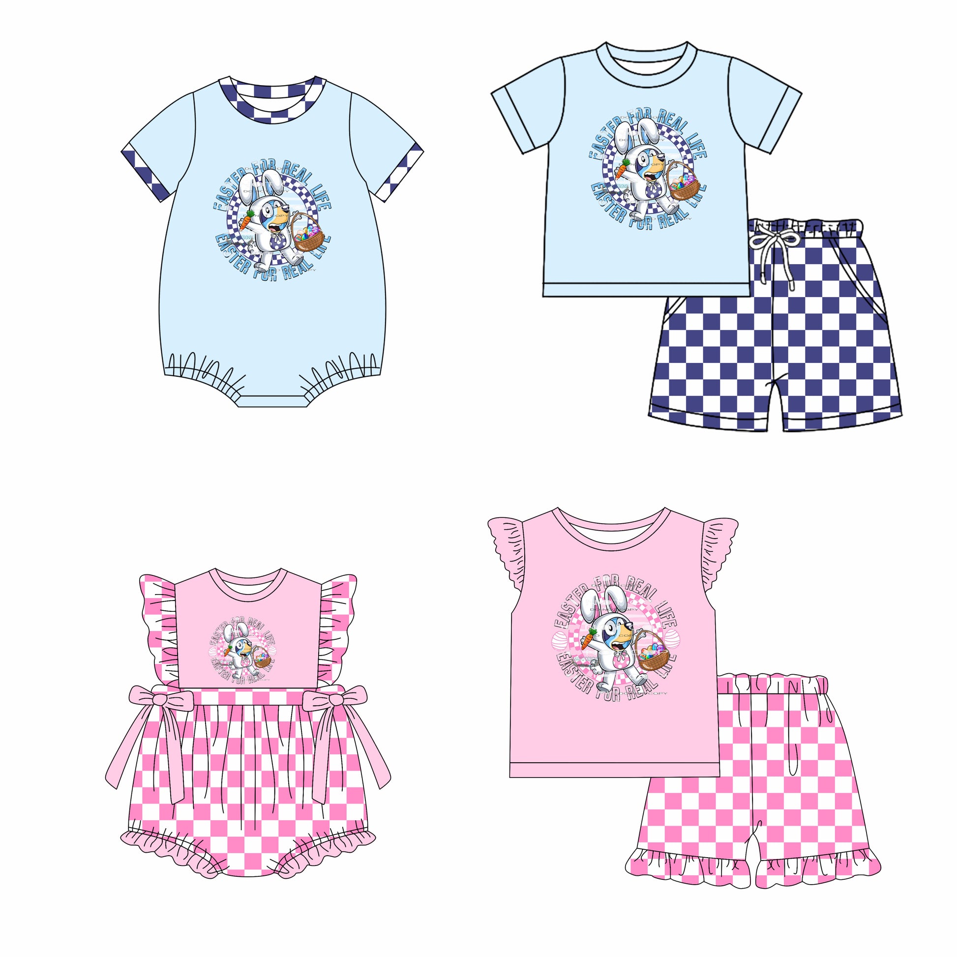 Baby Boy Girl Short Sleeves Easter Dogs Sibling Romper Clothes Set ( Moq 5 Each style )12.4