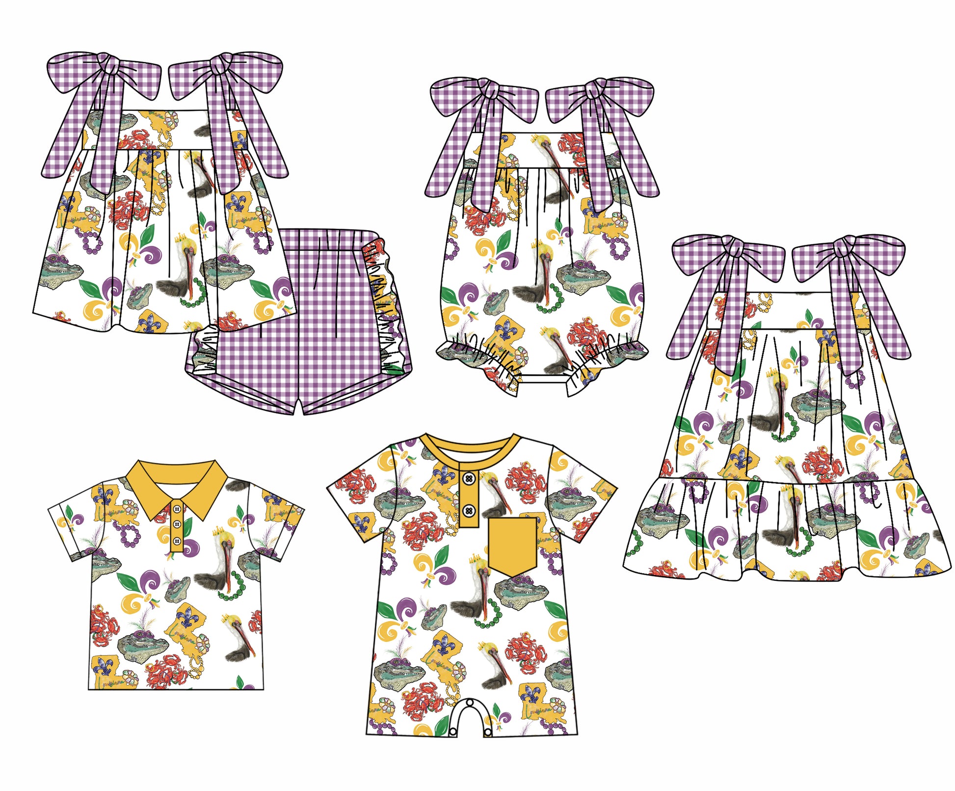 Baby Boy Girl Short Sleeves Sibling Dress Romper Clothes Mardi Gras Set ( Moq 5 Each style )12.3