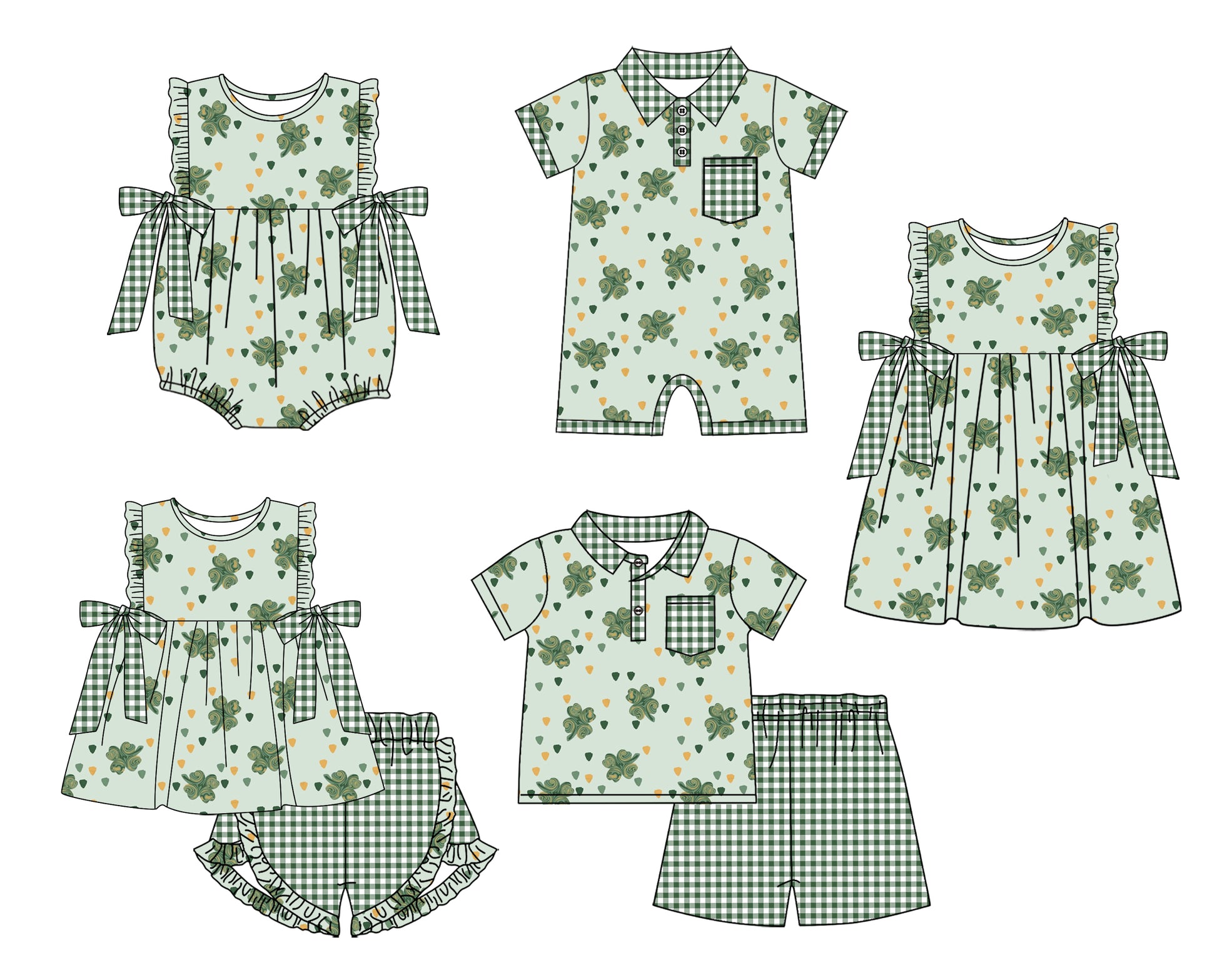 Baby Boy Girl Short Sleeves St. Patrick Sibling Dress Romper Clothes Set ( Moq 5 Each style )12.3
