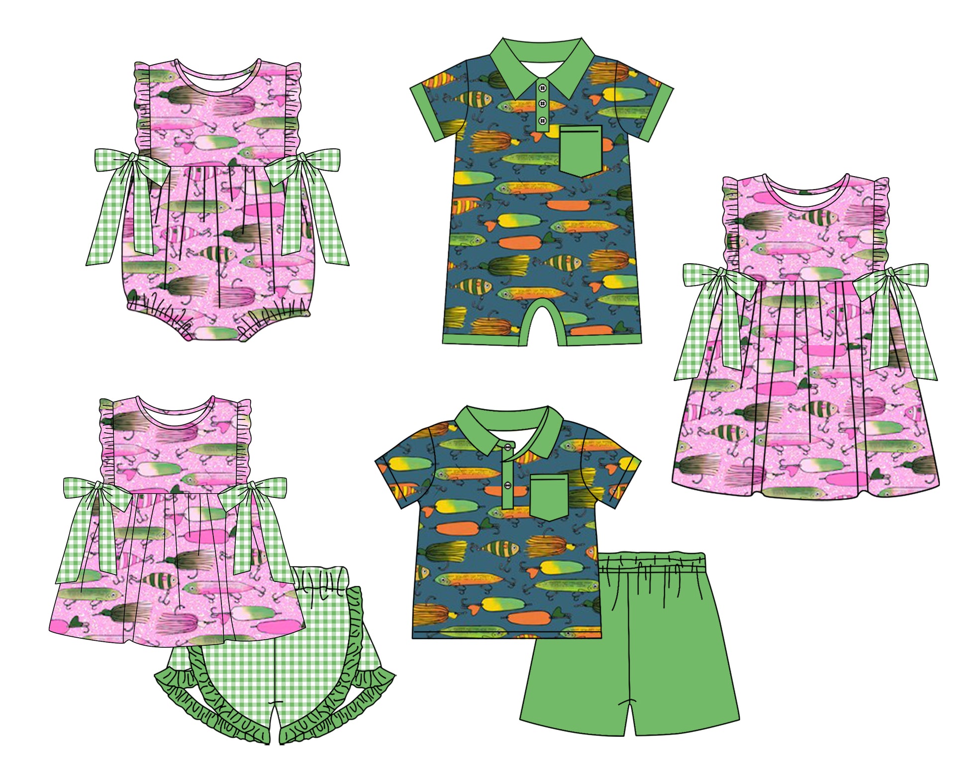 Baby Boy Girl Sibling Fishing Summer Dress Romper Clothes Set ( Moq 5 Each style )11.23