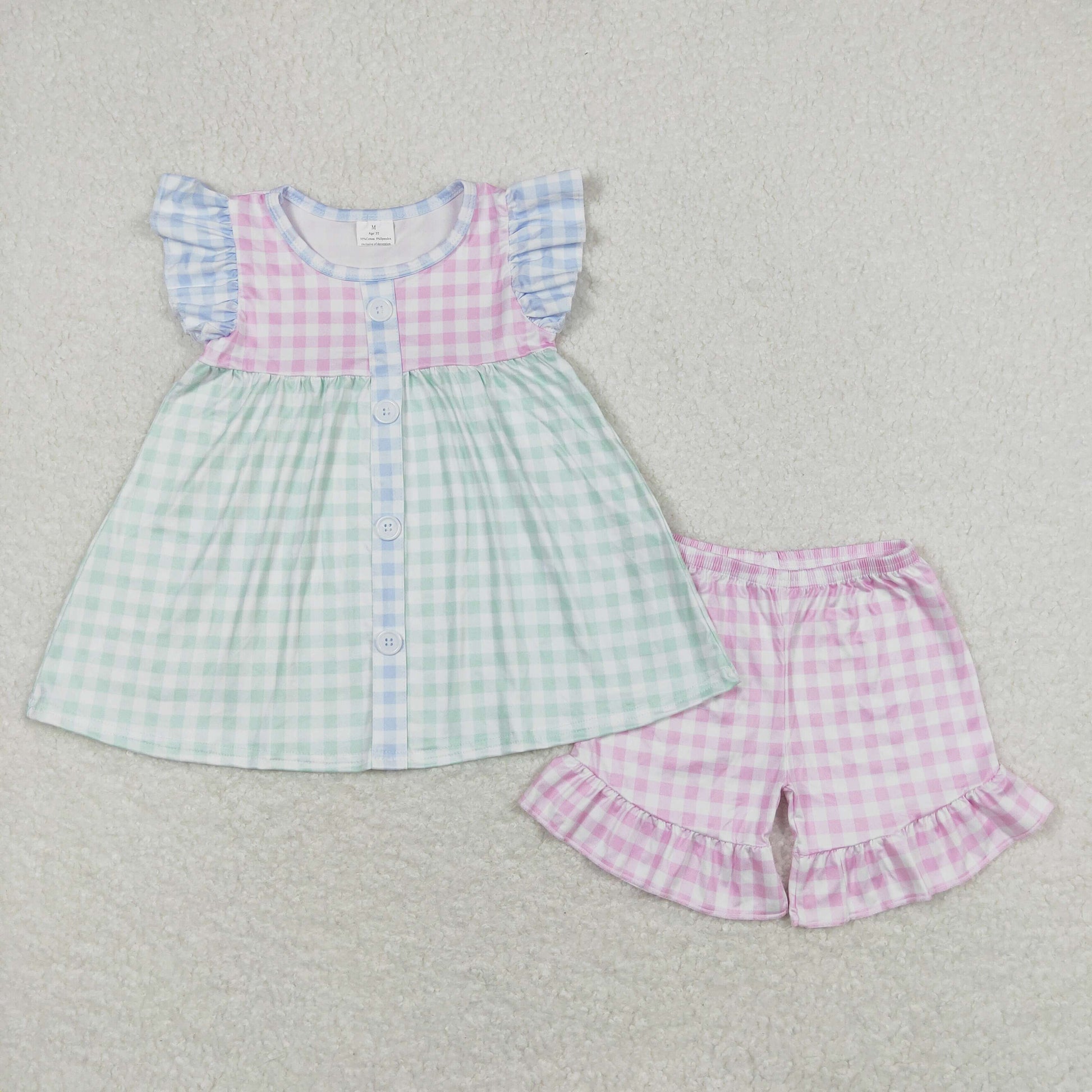 Baby Boy Green Short Sleeves Pocket Shirt Plaid Shorts Set
