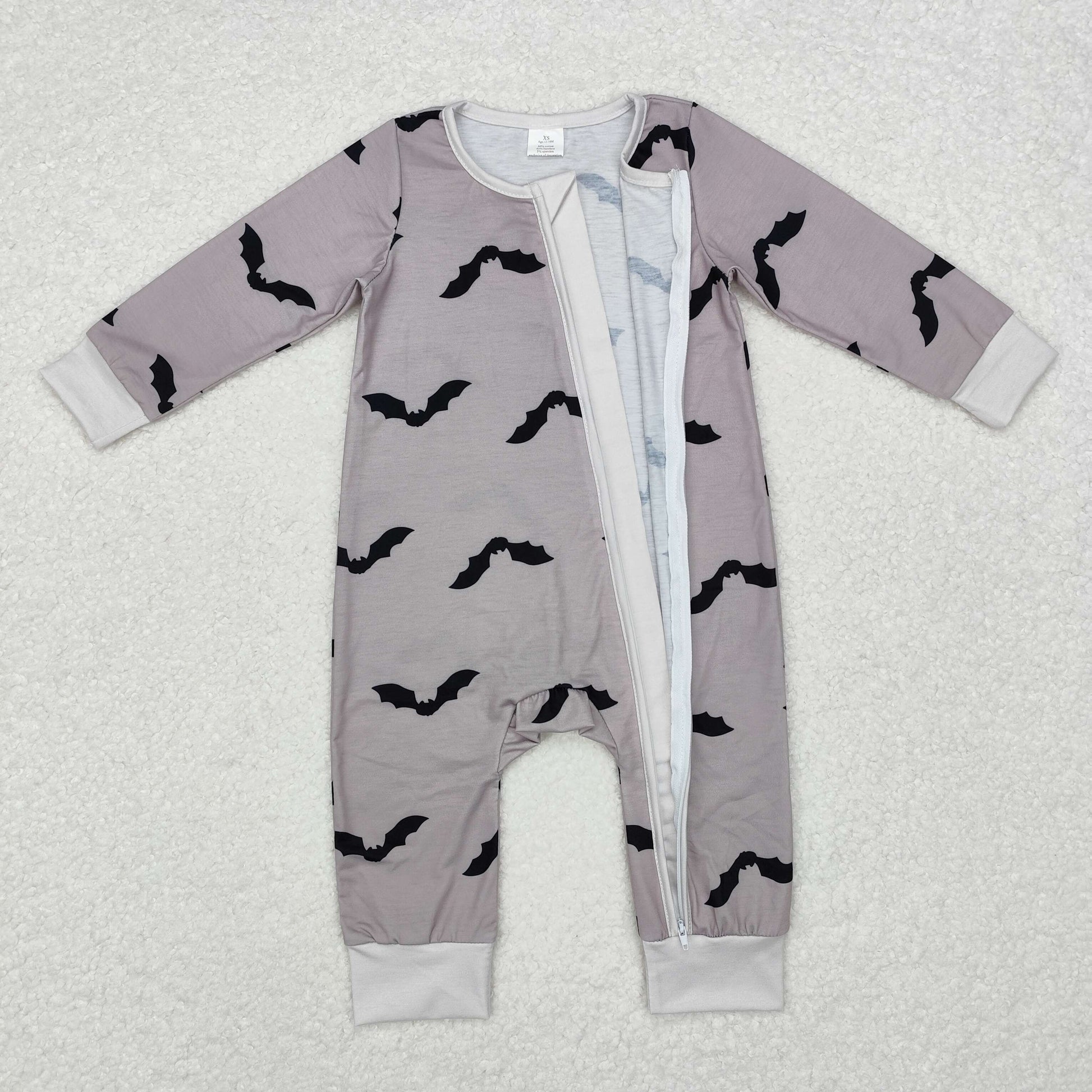 Baby Boy Grey Halloween Bats Long Sleeves Romper