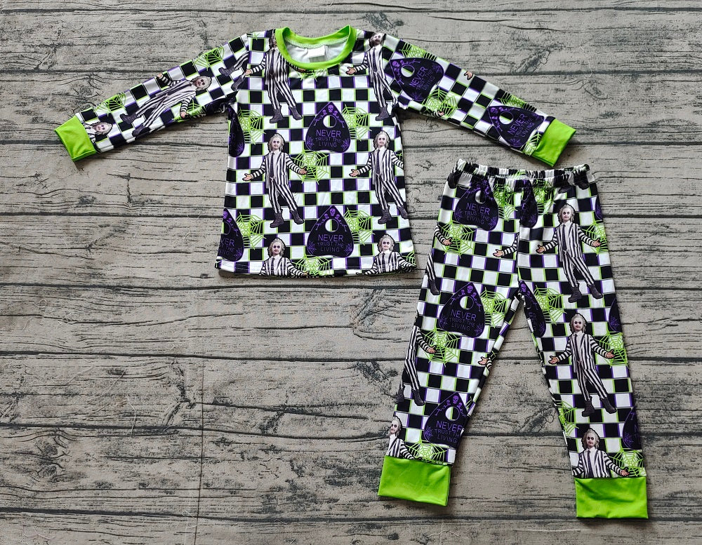 Baby Boy Halloween Checkered Shirt Pants Pajamas Green Set