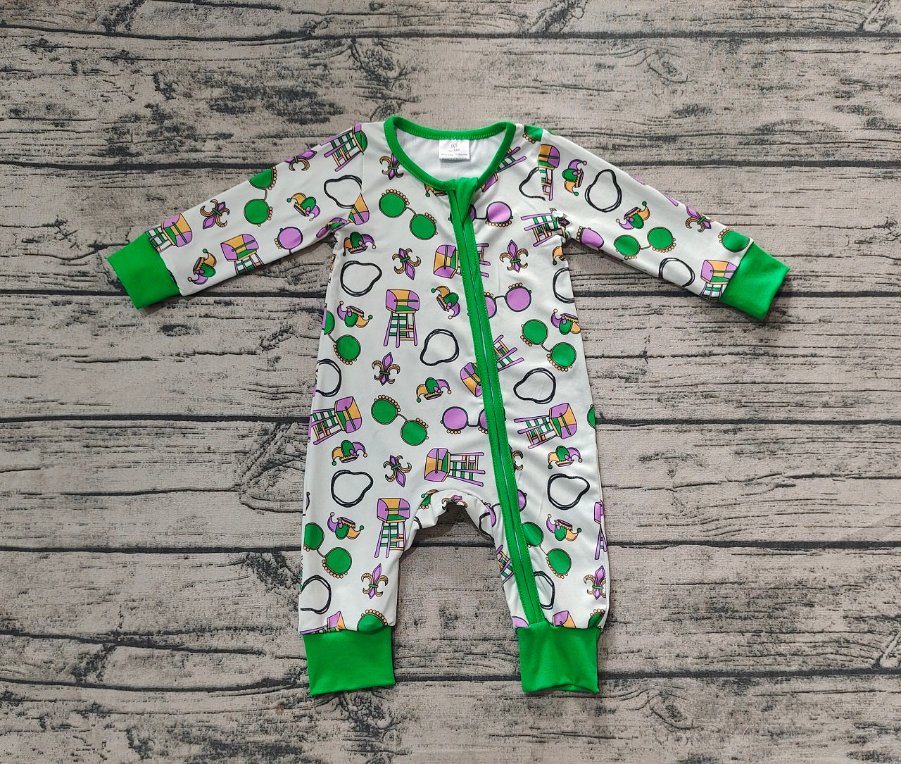 Baby Boy Infant Long Sleeves Mardi Gras Zipper Green Romper
