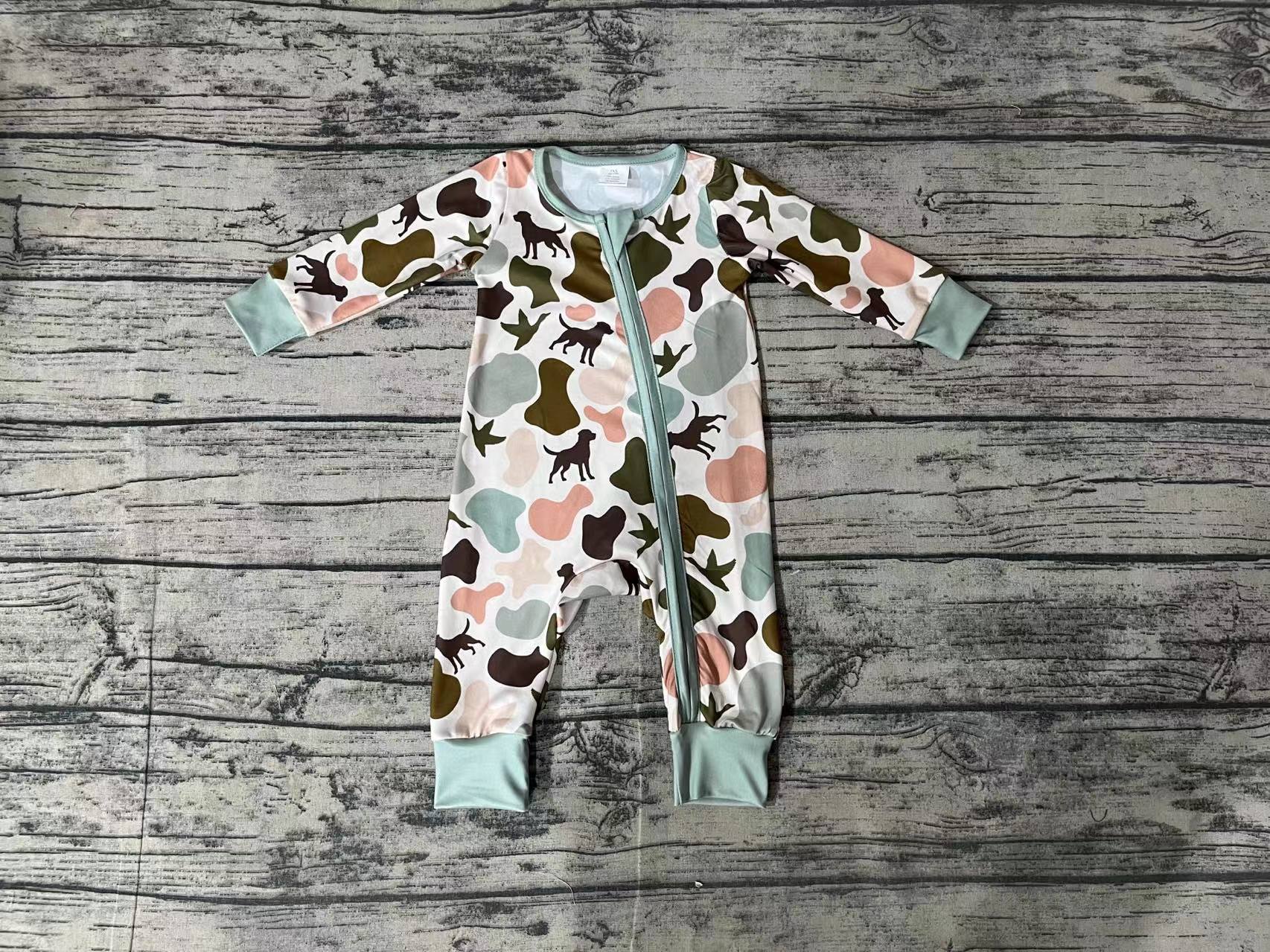 Baby Boy Long Sleeves Camo Dogs Duck Zipper Bamboo Romper