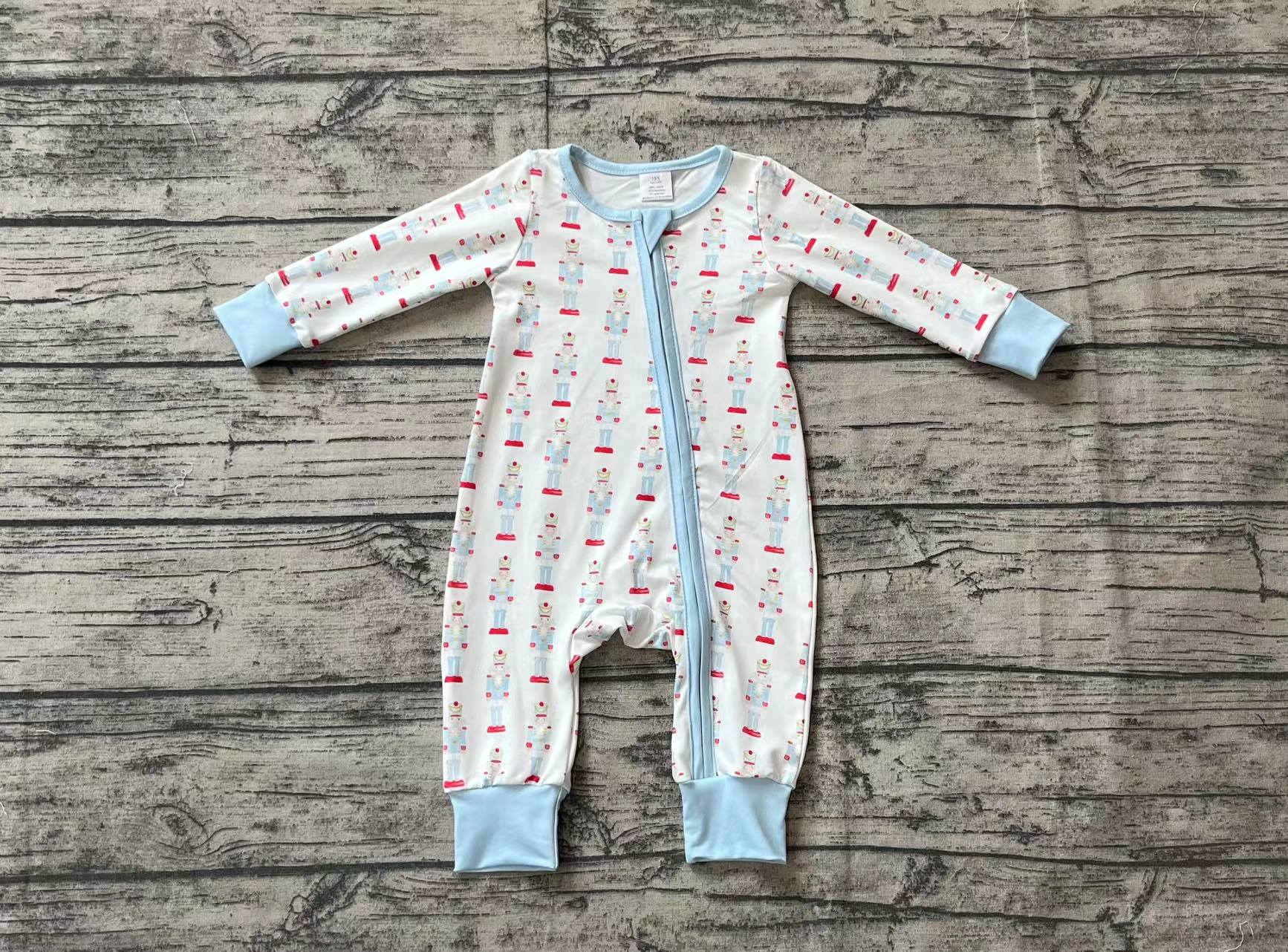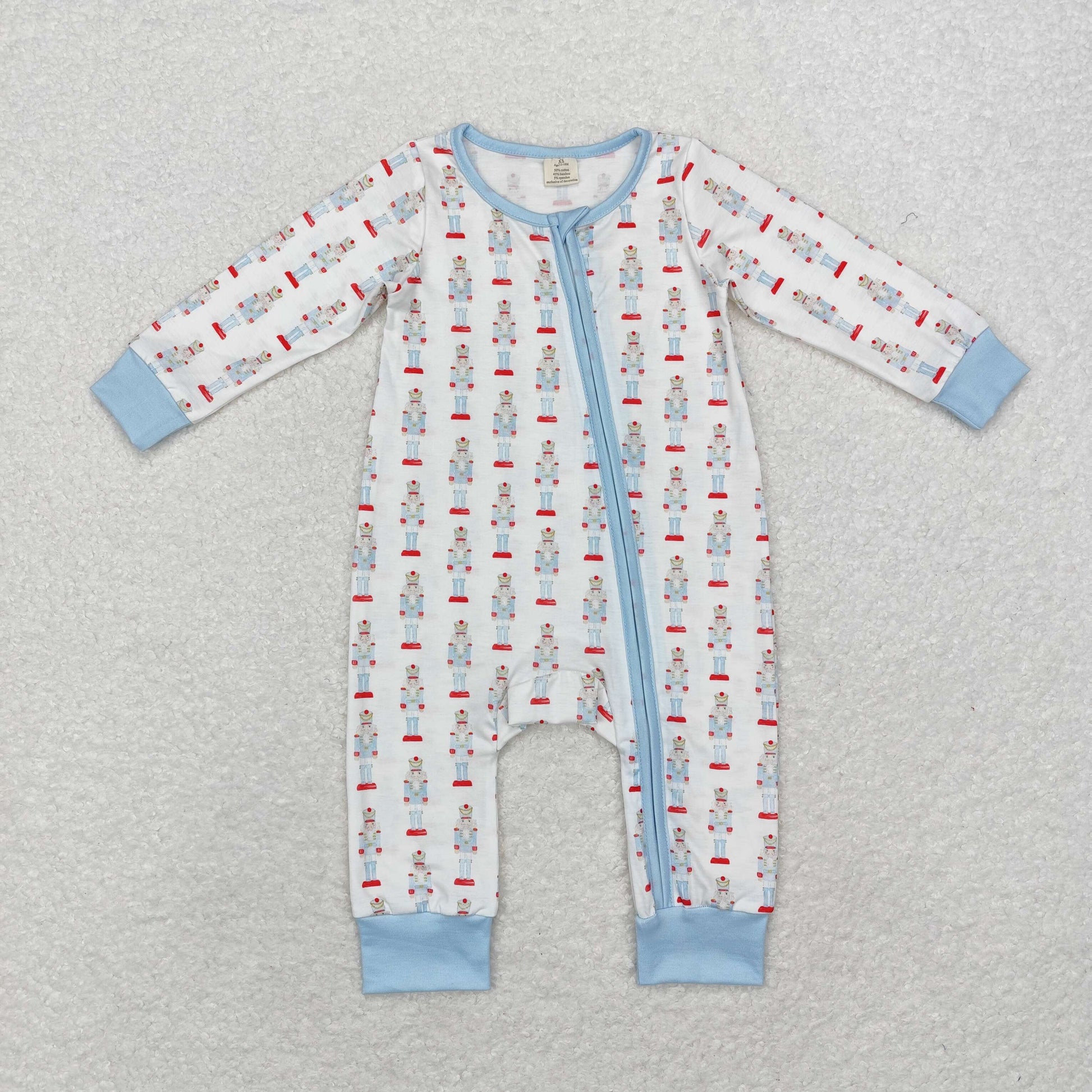 Baby Boy Long Sleeves Christmas Soldier Zipper Blue Bamboo Romper