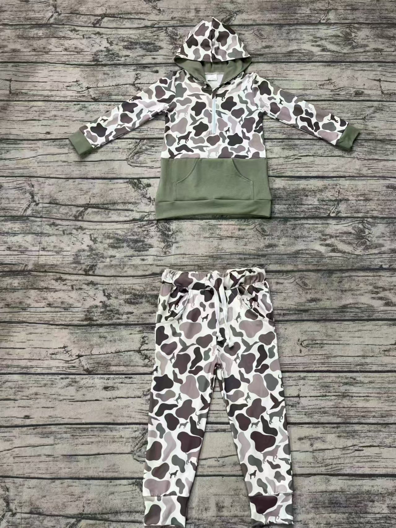 Baby Boy Long Sleeves Duck Dog Hunting Camo Hoodie Shirt Pants Set