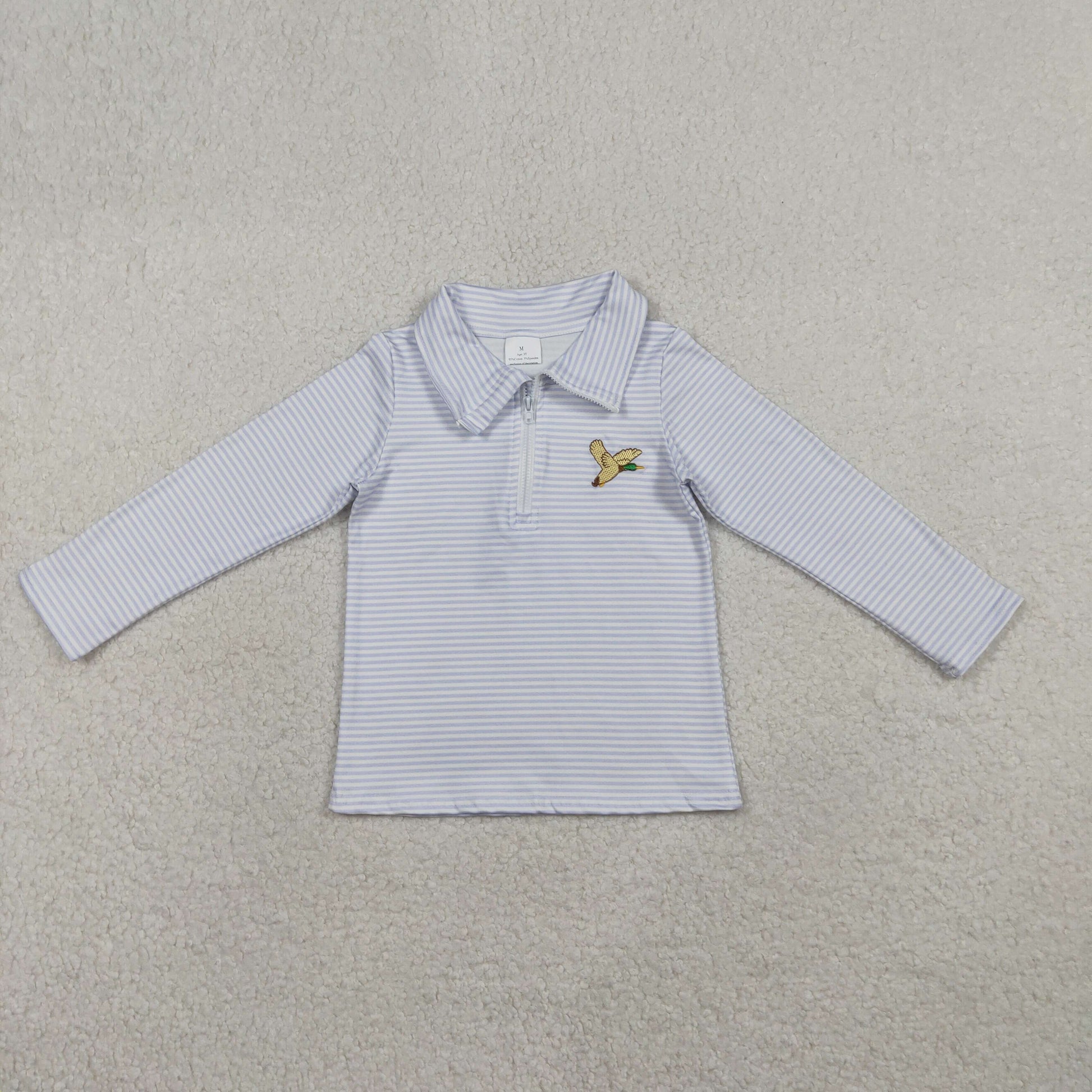 Baby Boy Long Sleeves Embroidery Duck Blue Stripes Zipper Pullover Shirt RTS