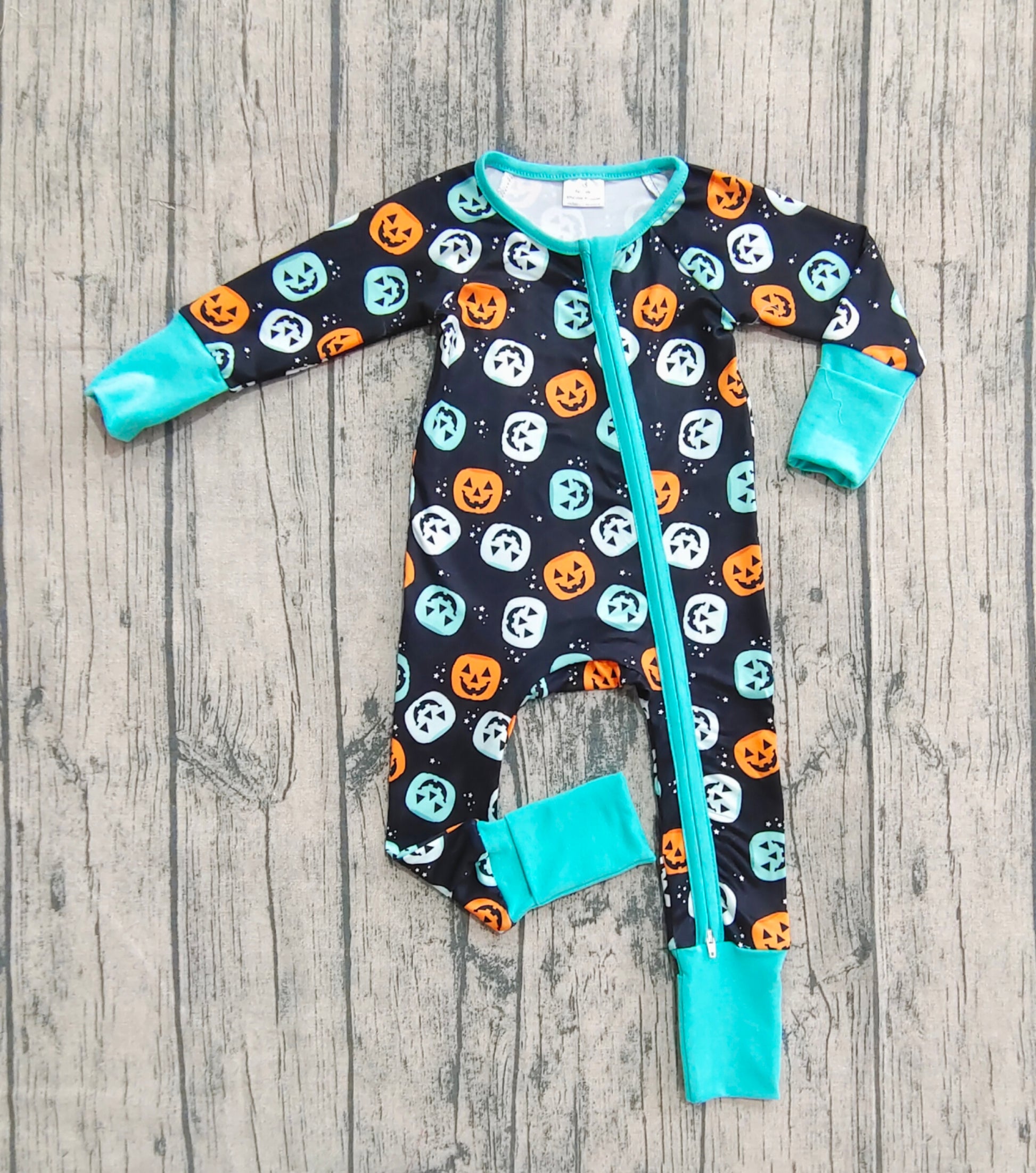 Baby Boy Long Sleeves Halloween Ghost Pumpkins Zipper Romper RTS