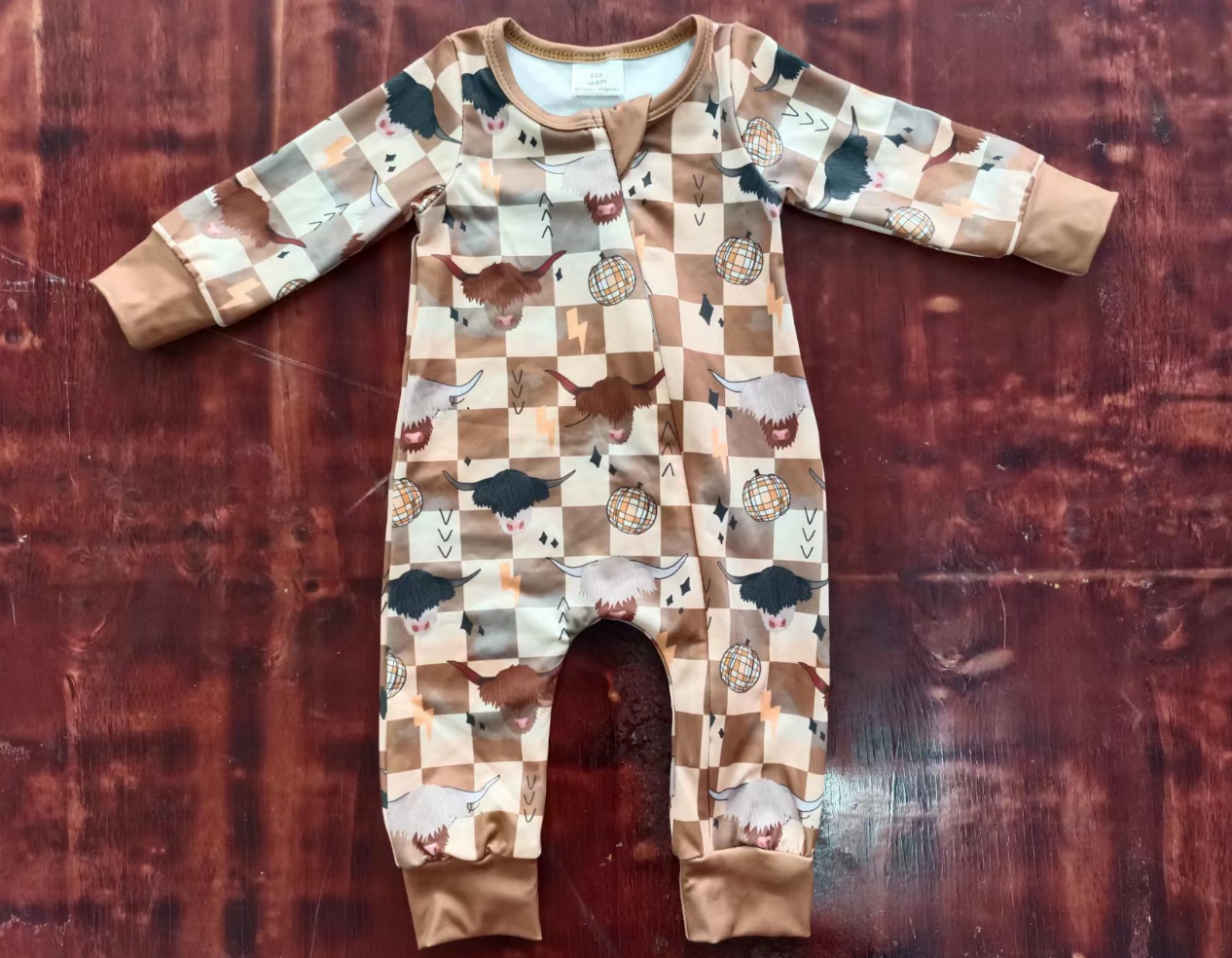 Baby Boy Long Sleeves Western Checkered Zipper Romper Moq 5