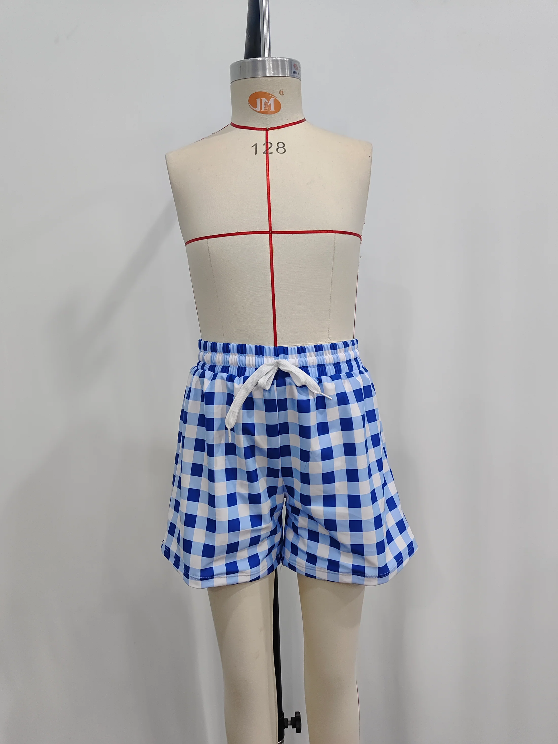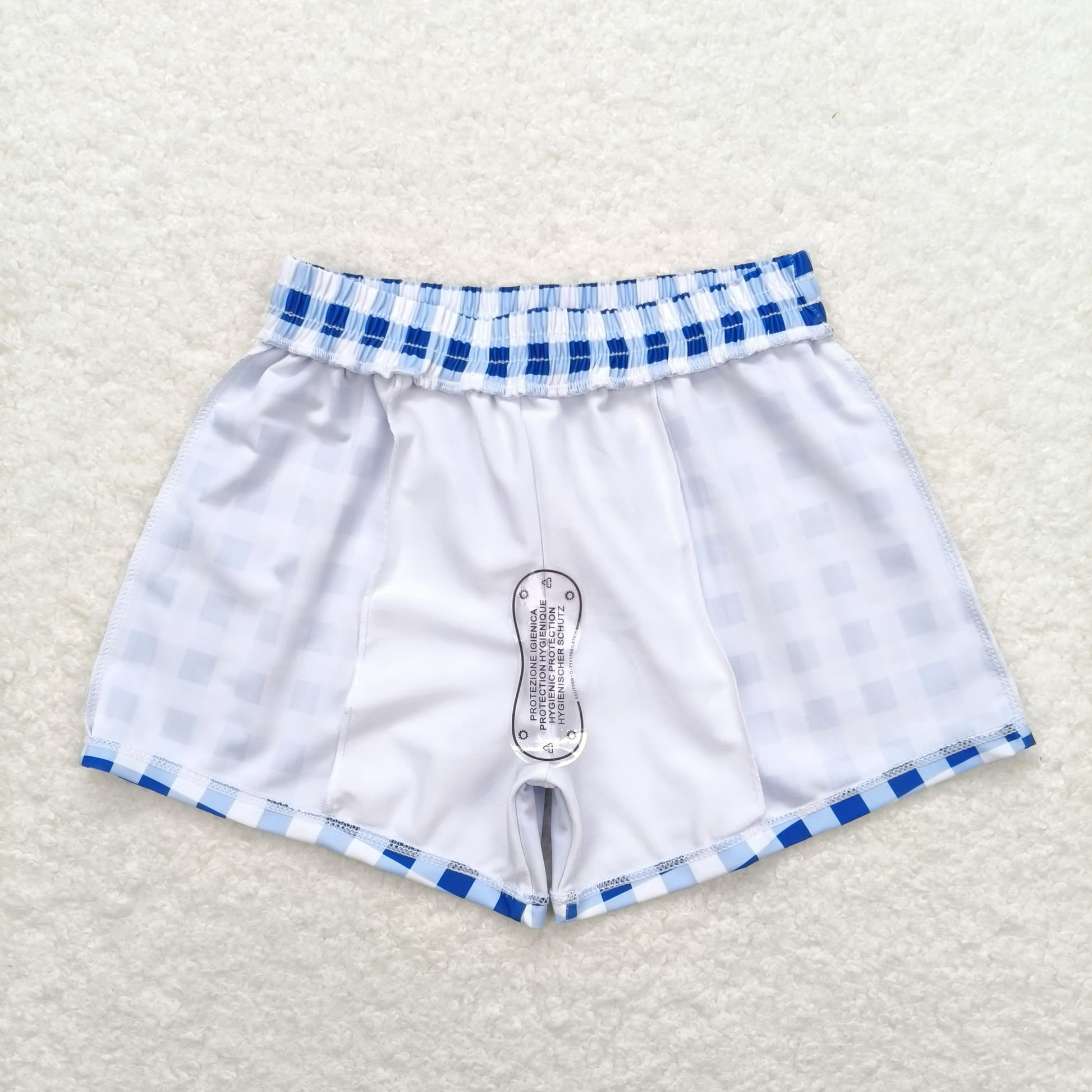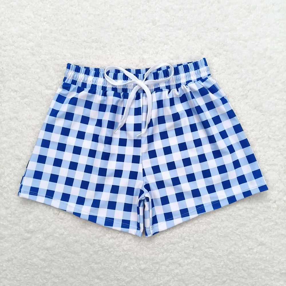 Baby Boy One Piece Blue Plaid Swimsuits Trunks Swimwear
