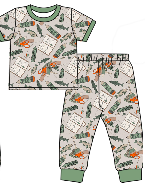 Baby Boy Short Sleeves Fishing Sibling Romper Clothes Set ( Moq 5 Each Design )11.21