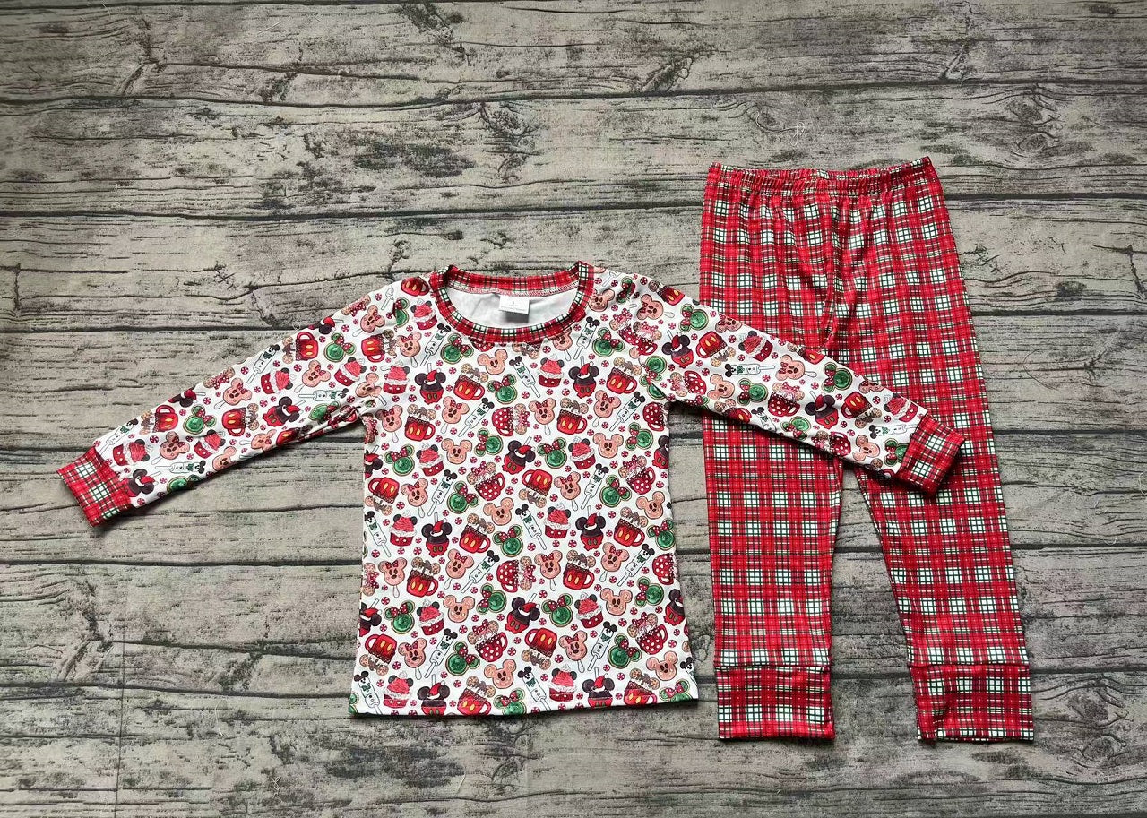 Baby Boy Long Sleeves Christmas Mouses Tops Plaid Pants Pajamas Set
