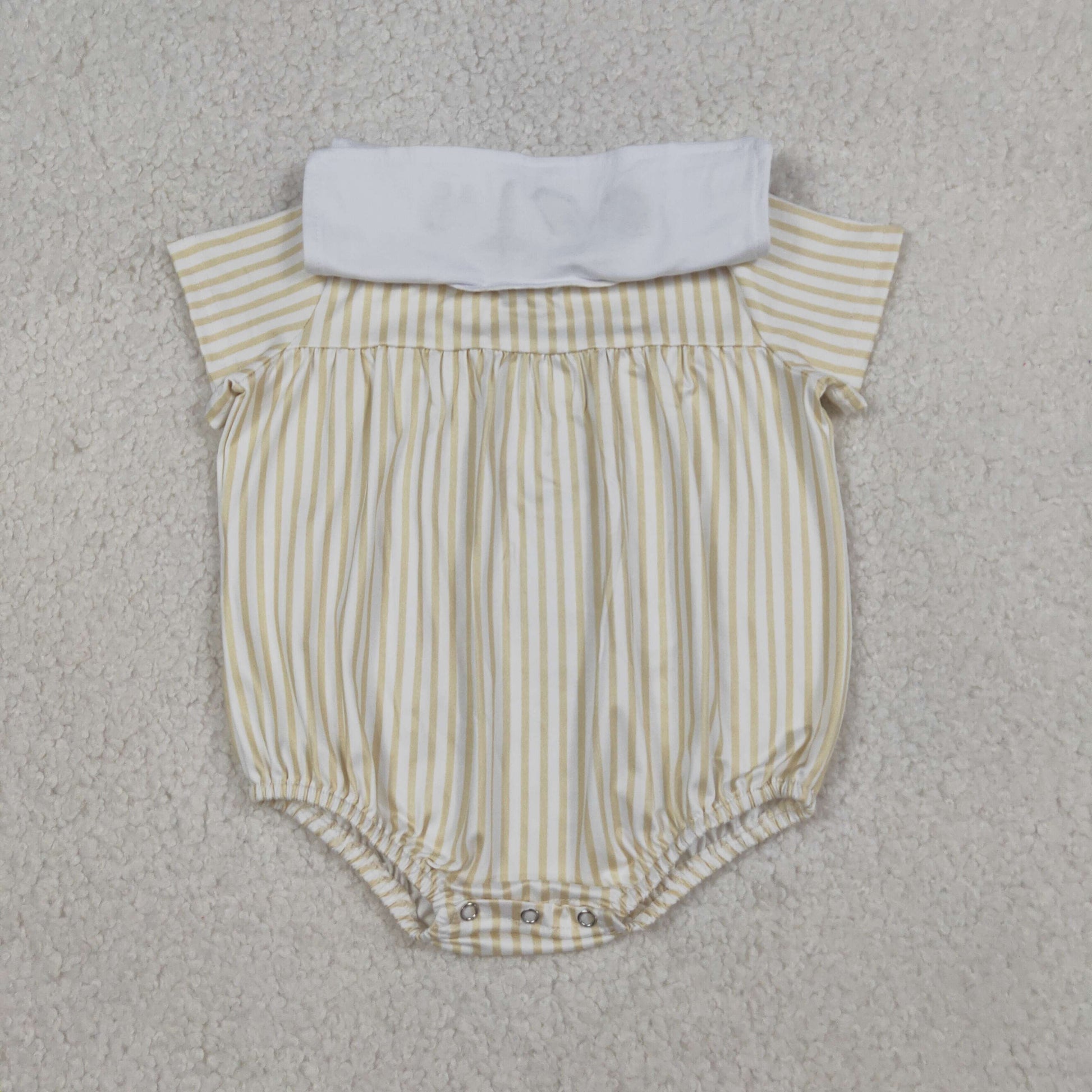 Baby Boys Infant Short Sleeves Embroidery Crosses Stripes Easter Bubble Romper RTS
