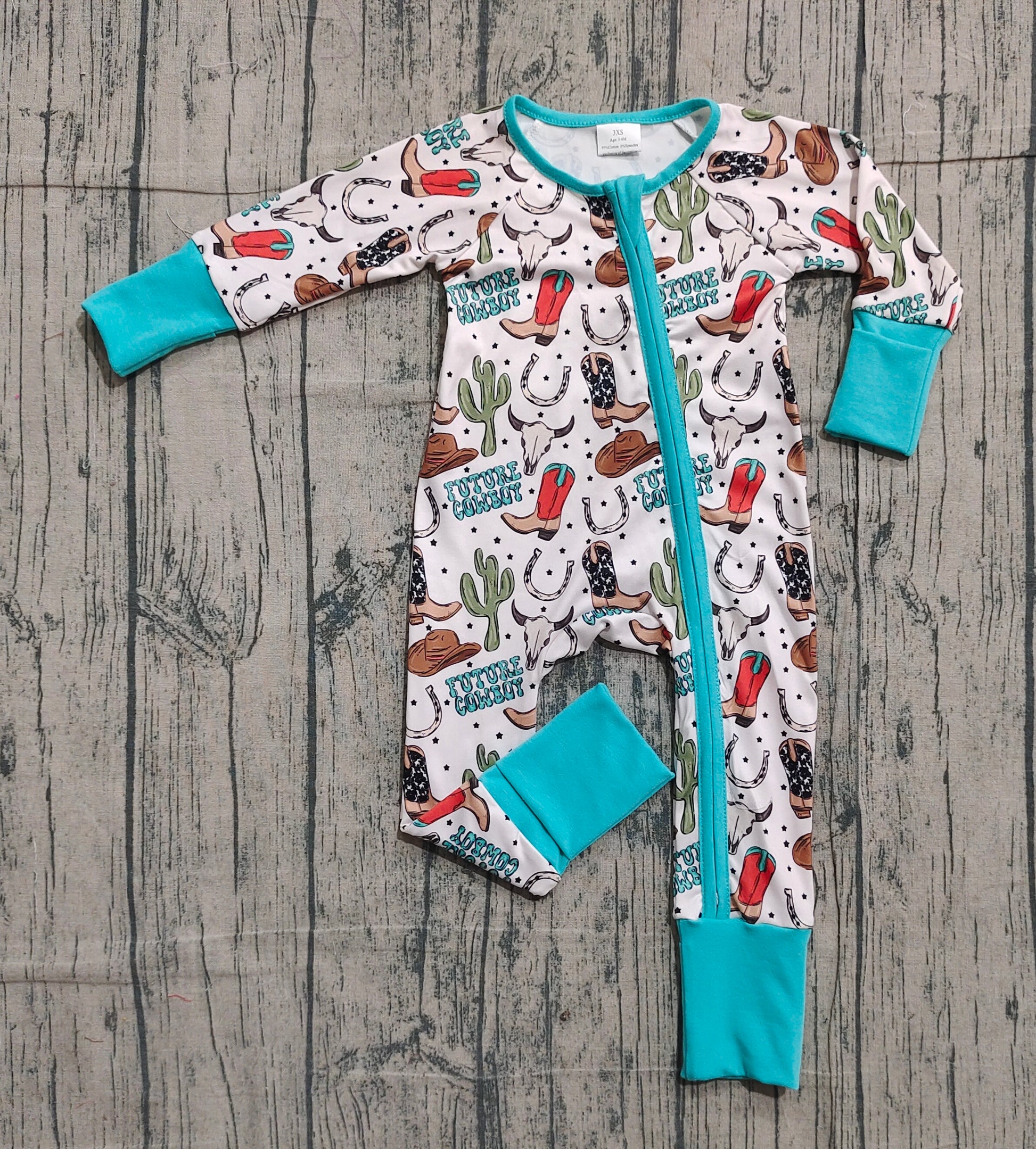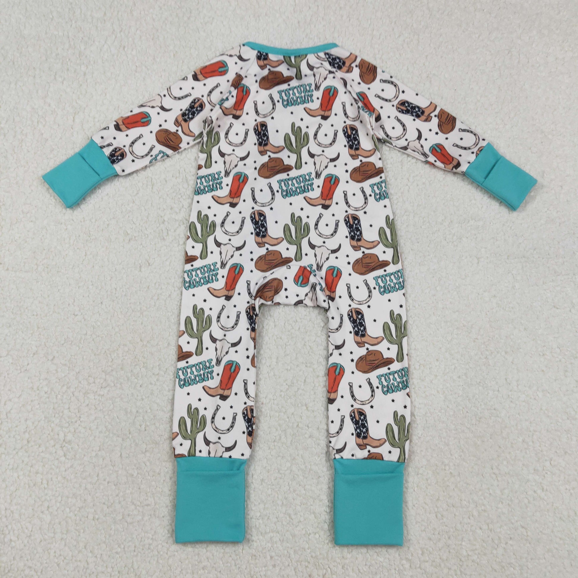 Baby Boys Long Sleeves Boots Cactus Cowboy Zipper Footie Sleeper Romper RTS