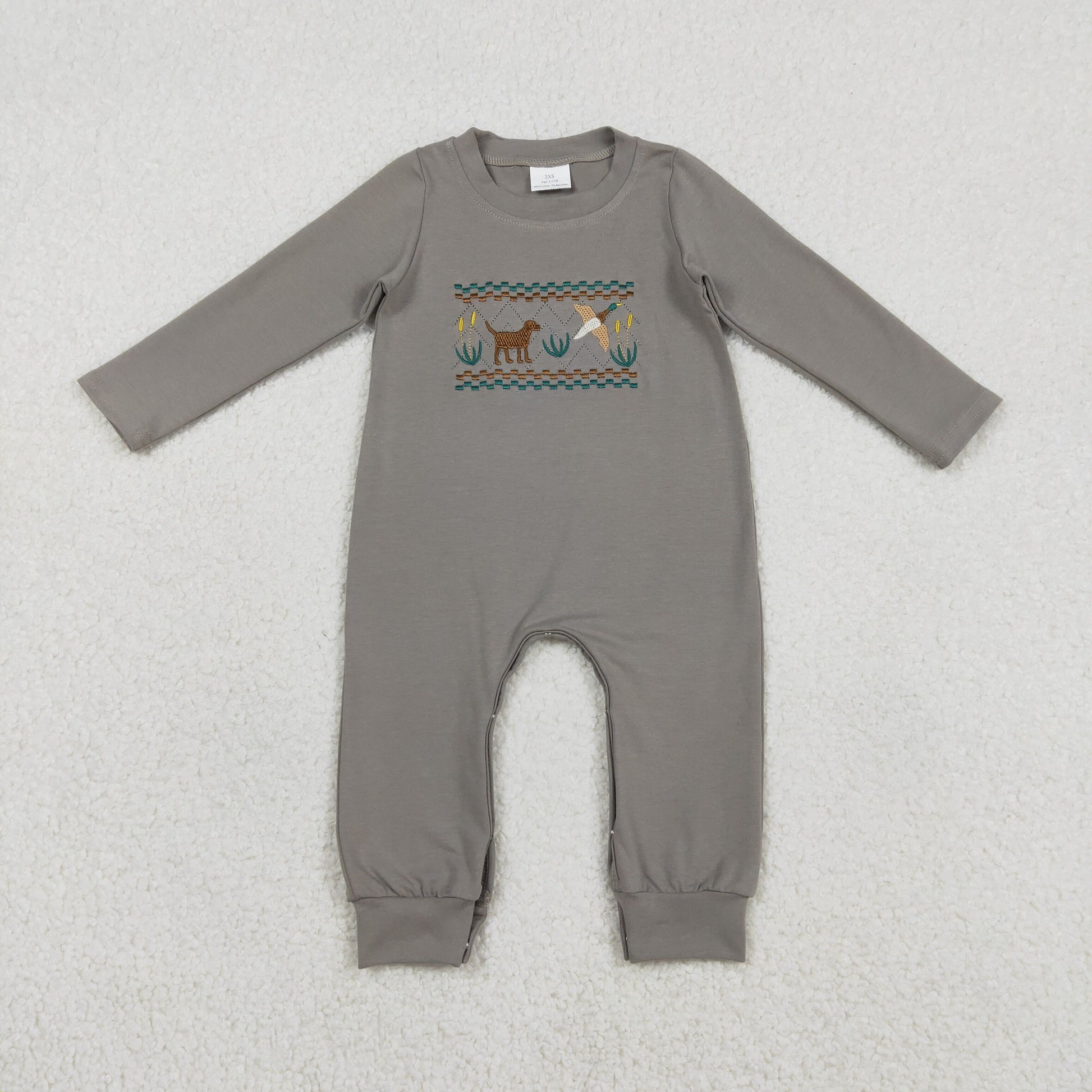 Baby Boys Long Sleeves Embroidery Dogs Ducks Cotton Romper RTS