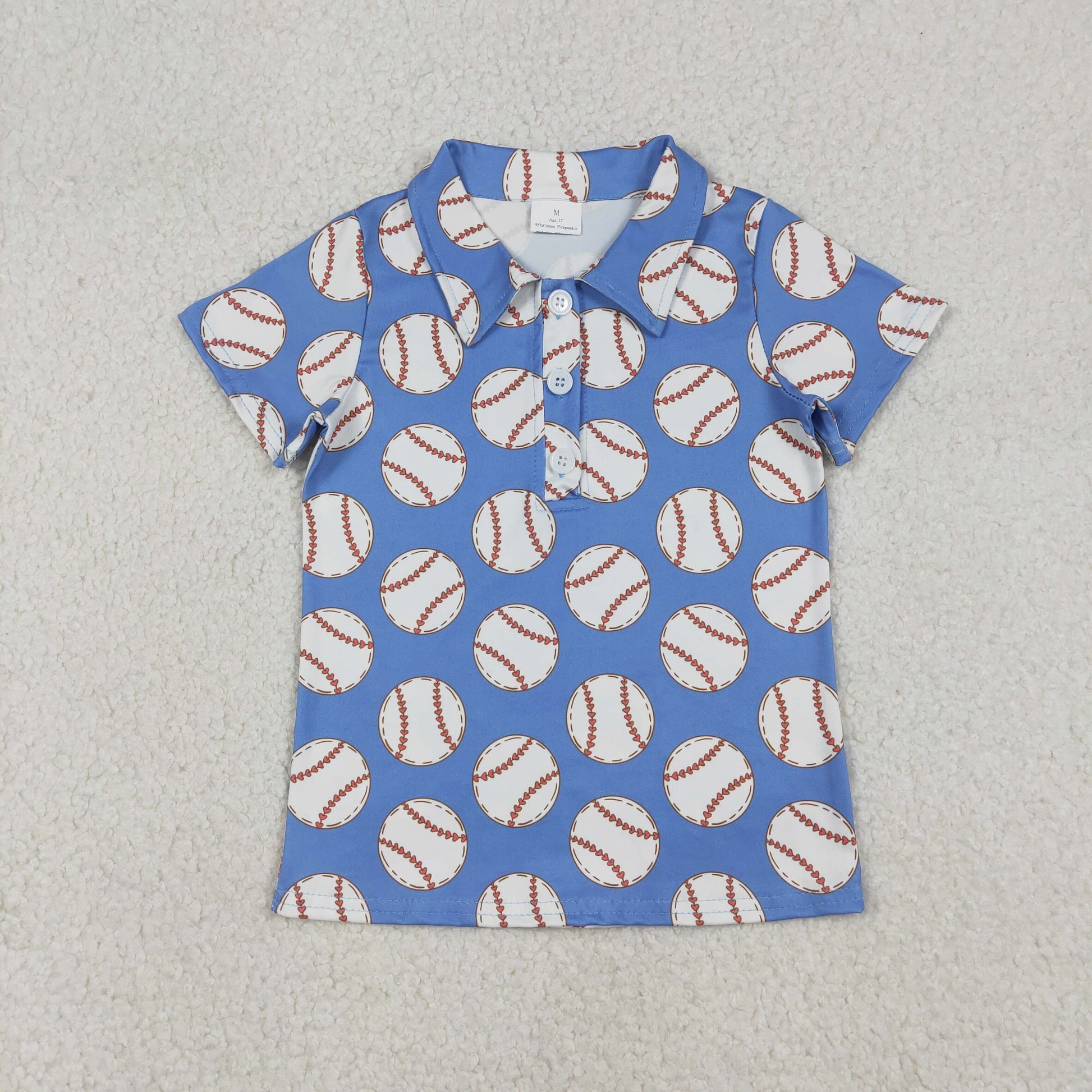 Baby Boys Short Sleeves Baseball Buttons Blue Shirt Tops RTS