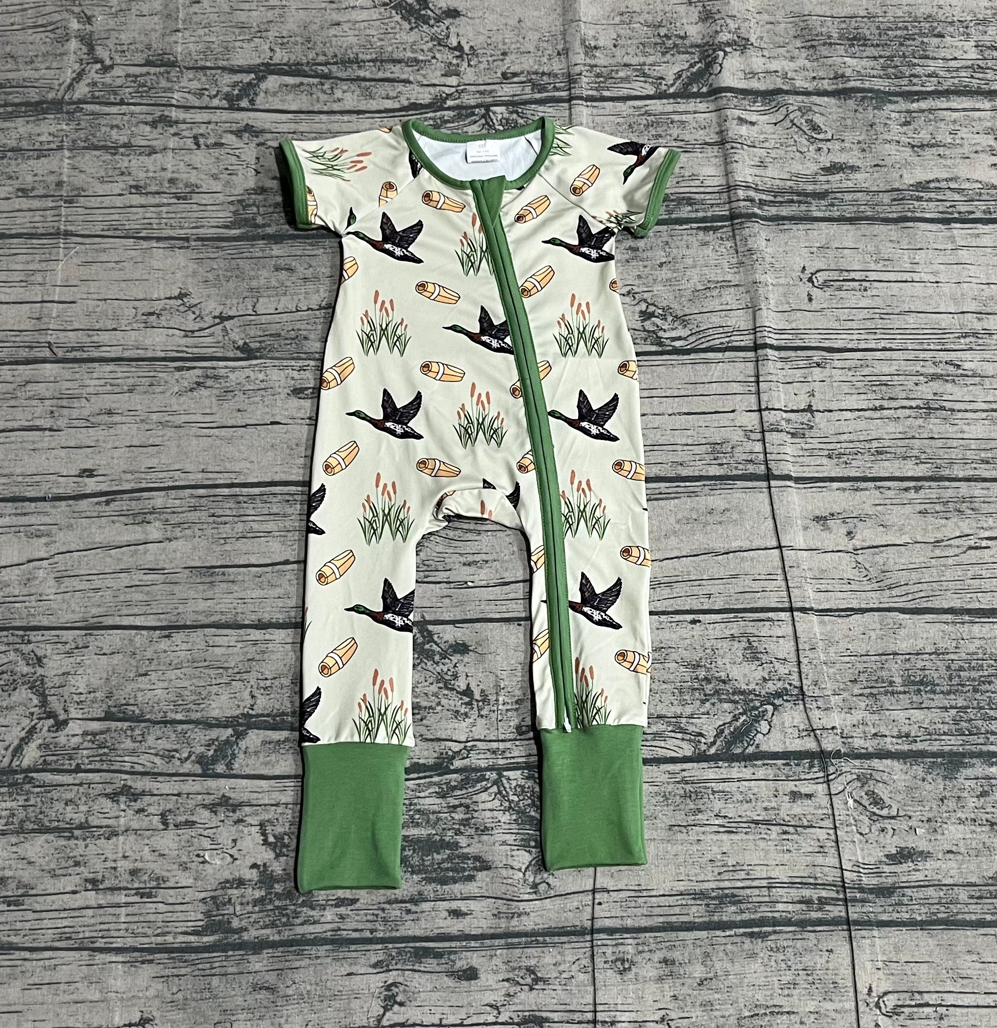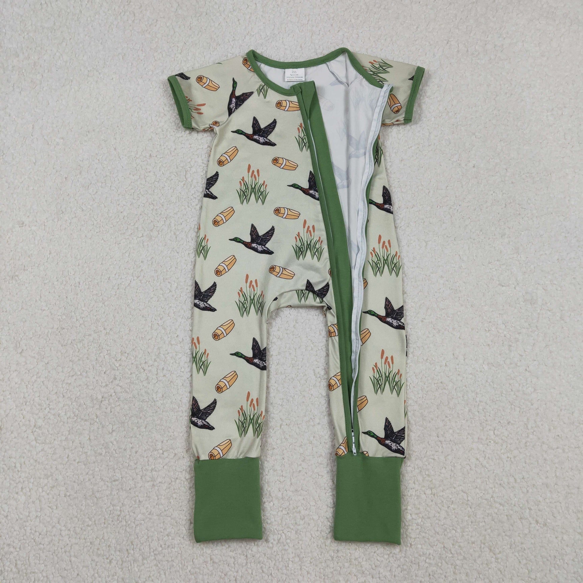 Baby Boys Short Sleeves Ducks Green Zipper Sleeper Hunting Romper RTS