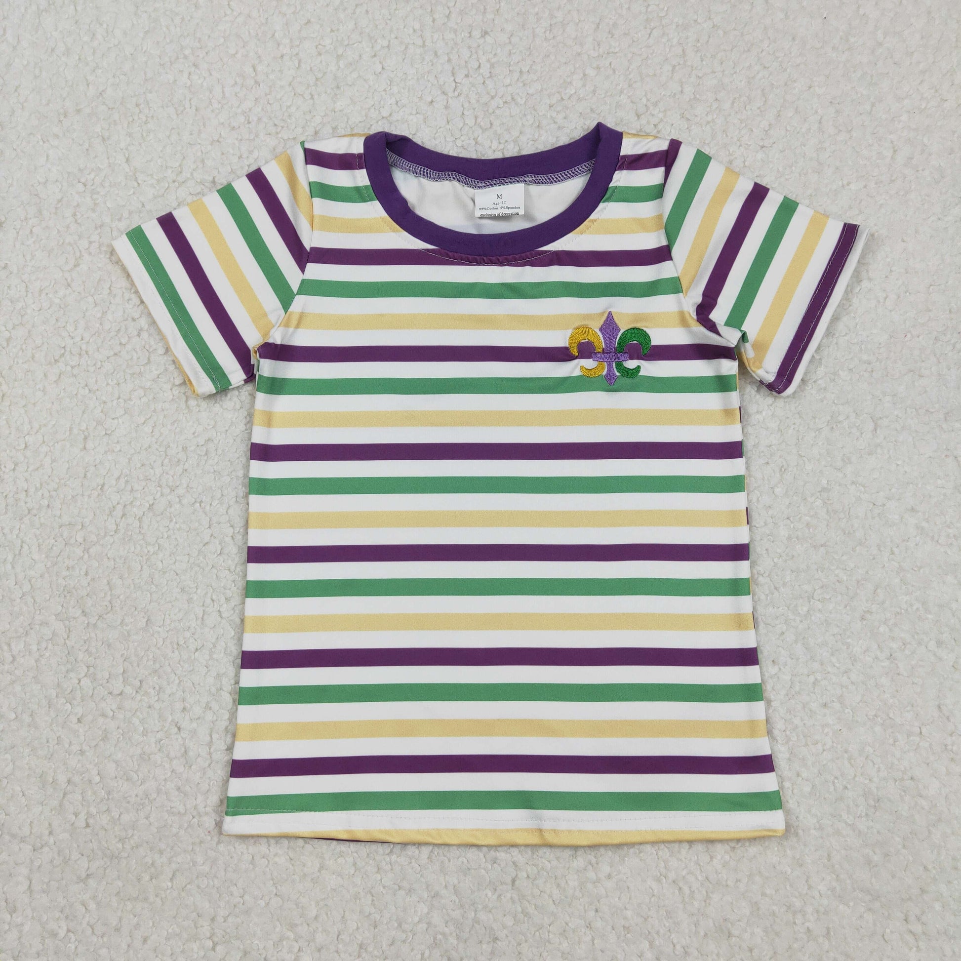 Baby Boys Short Sleeves Stripes Mardi Gras Embroidery Anchors Shirt Tops RTS