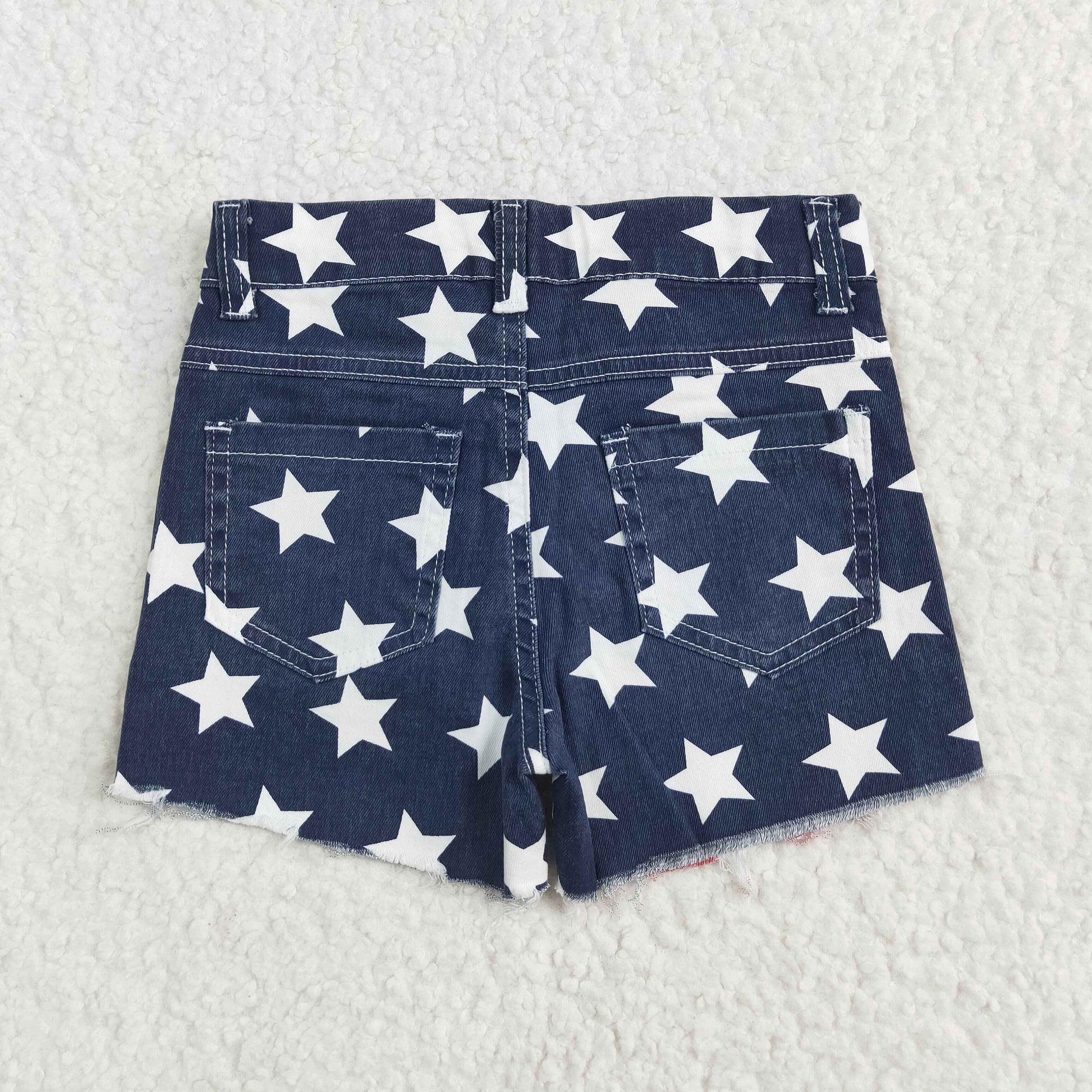 Baby Girl 4th Of July Strips Stars Denim Shorts RTS