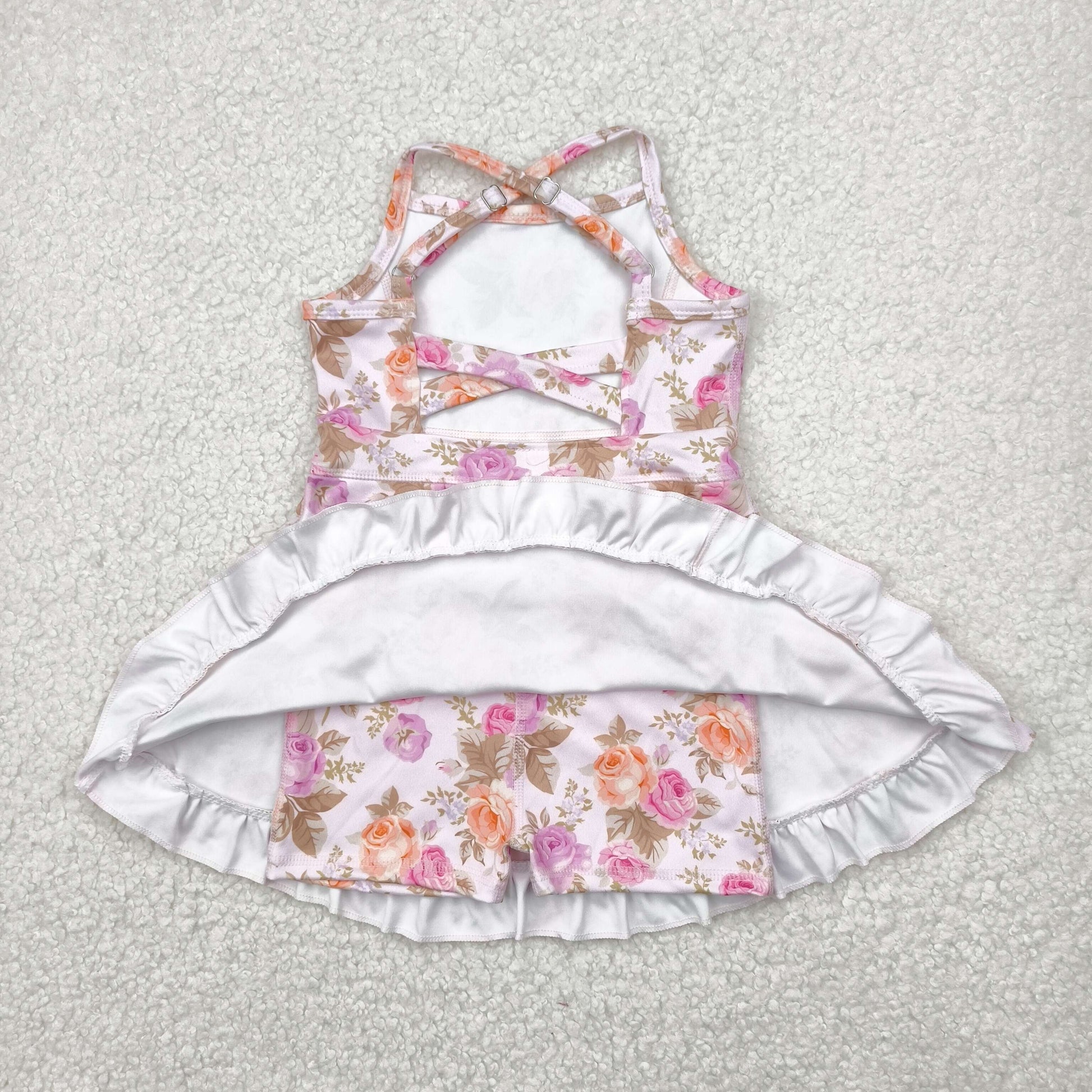 Baby Girl Athletic Pink Orange Flower Yoga Active Wear Skort Dress RTS