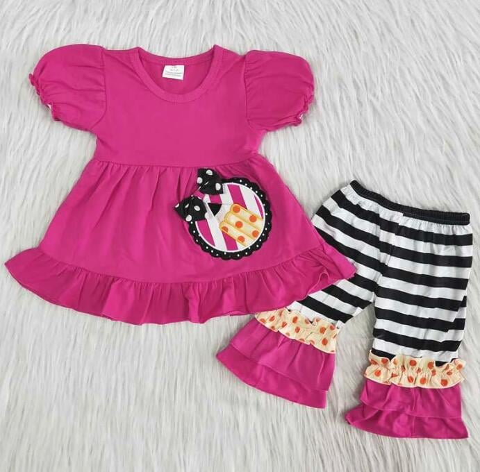 Baby Girl Back to school Blue Embroidery Bus Capris Outfit
