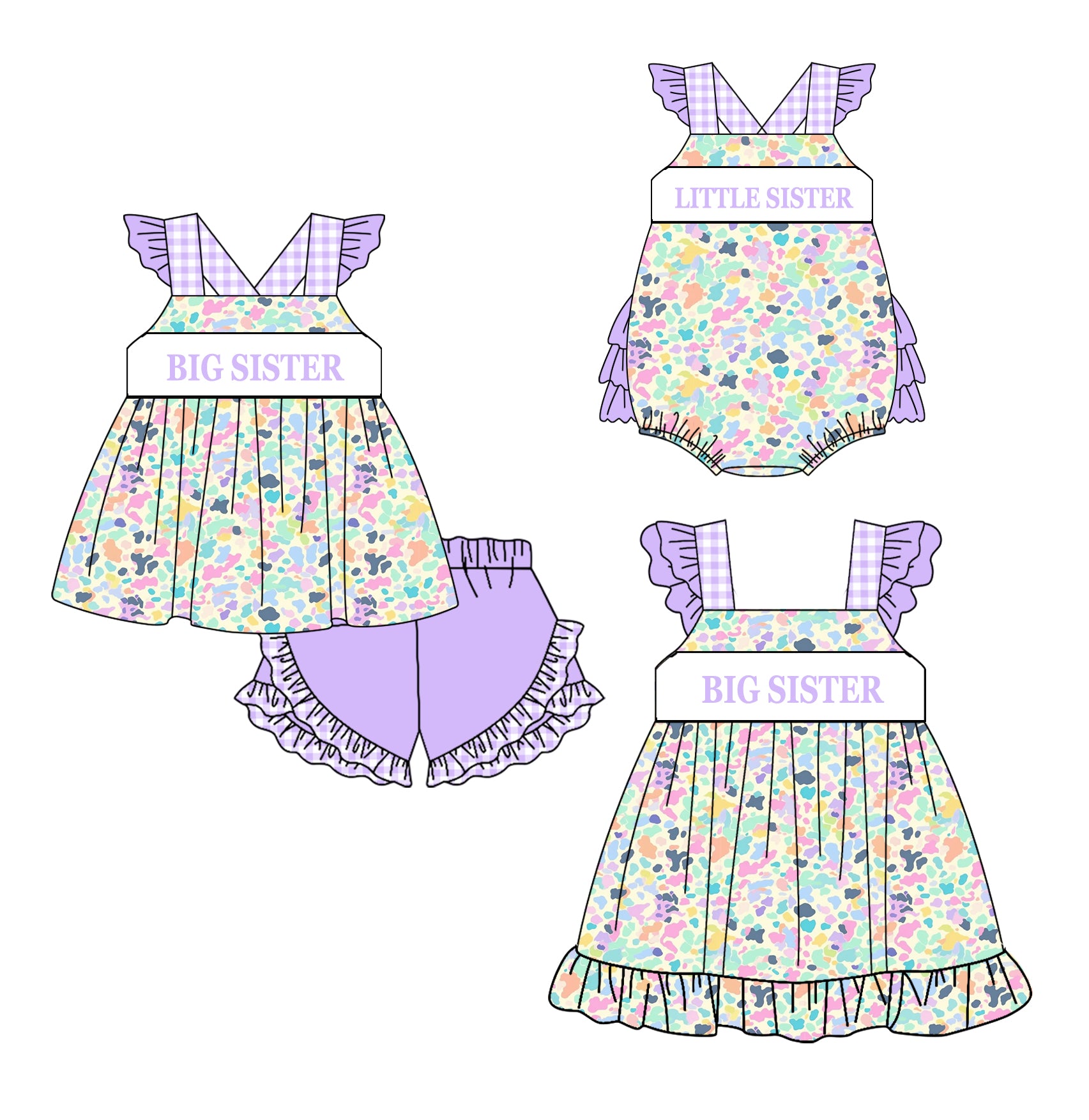 Baby Girl Big Little Sister Colorful Sibling Romper Dress Clothes Set ( Moq 5 Each Design )11.20