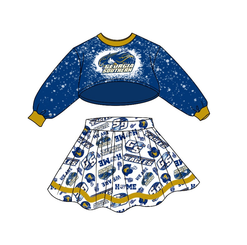 Baby Girl Blue Long Sleeves Tops Team Skirt Outfit Moq 5