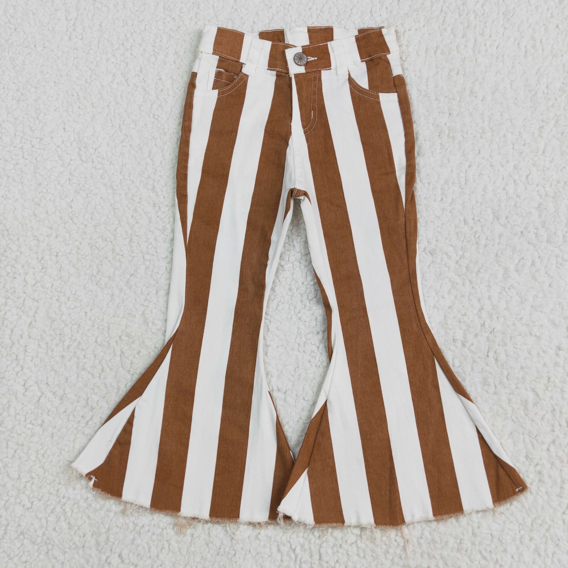 Baby Girl Brown Stripes Denim Bell Bottom Pants Jeans RTS