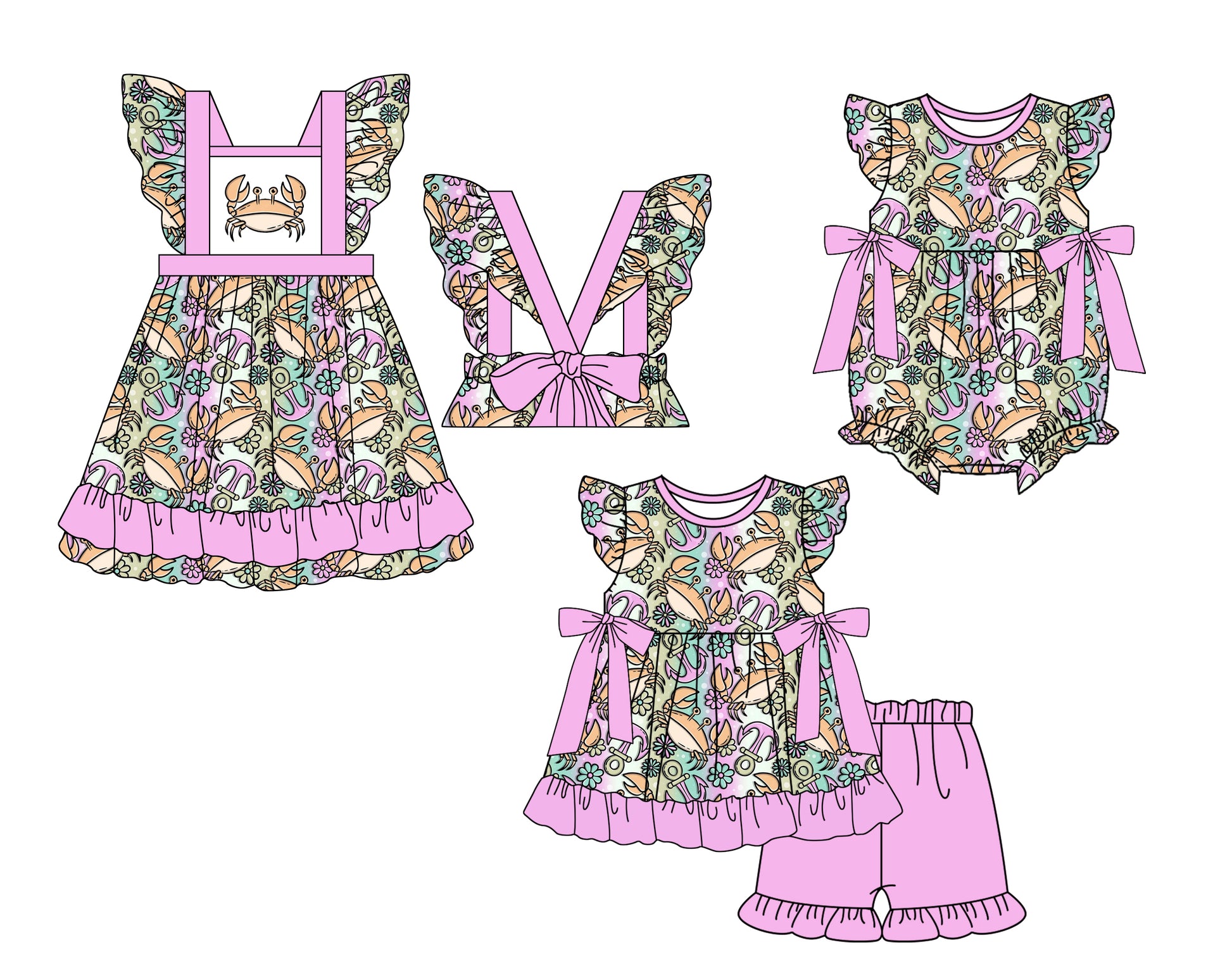Baby Girl Crabs Flower Sibling Romper Dress Clothes Set ( Moq 5 Each Design ) 11.27