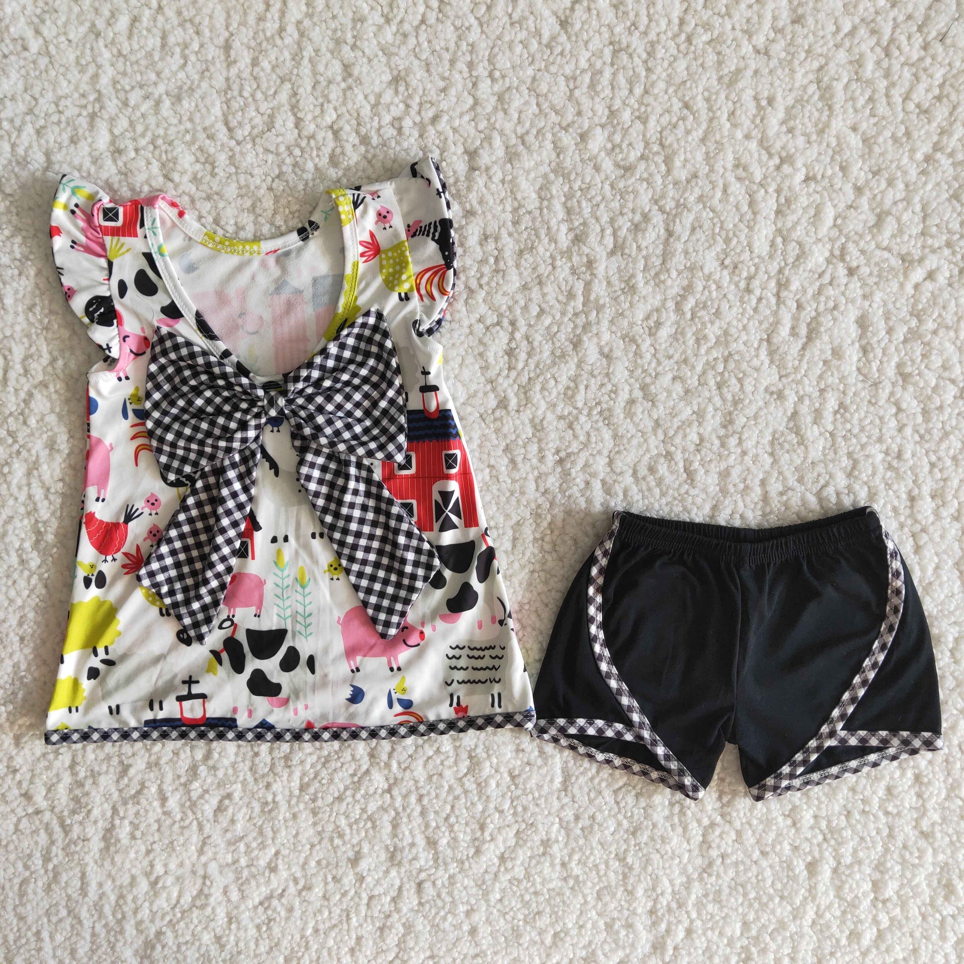 Baby Girl Farm & Bow Summer Outfit