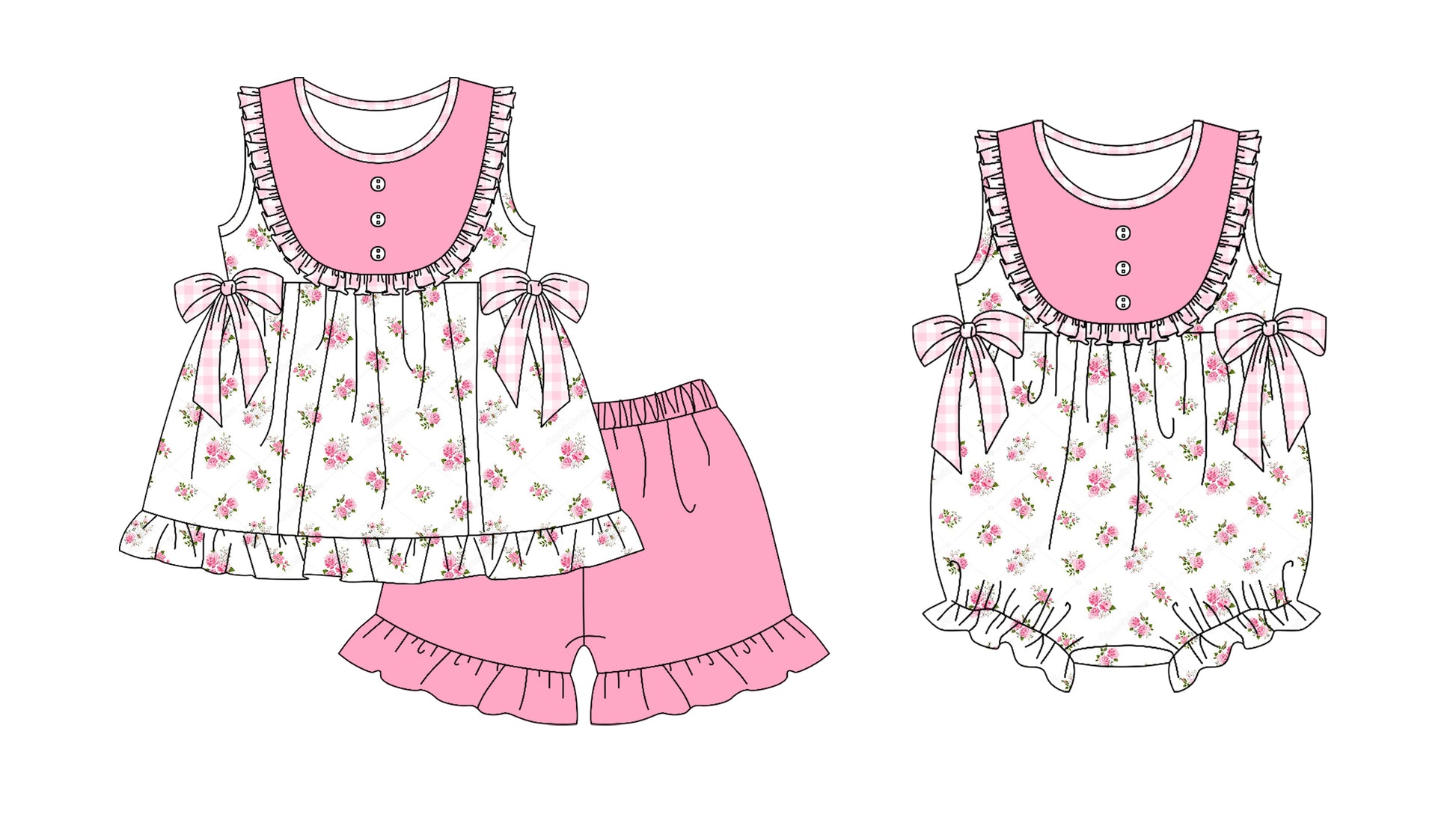 Baby Girl Floral Bows Sibling Summer Romper Set ( Moq 5 Each Design )