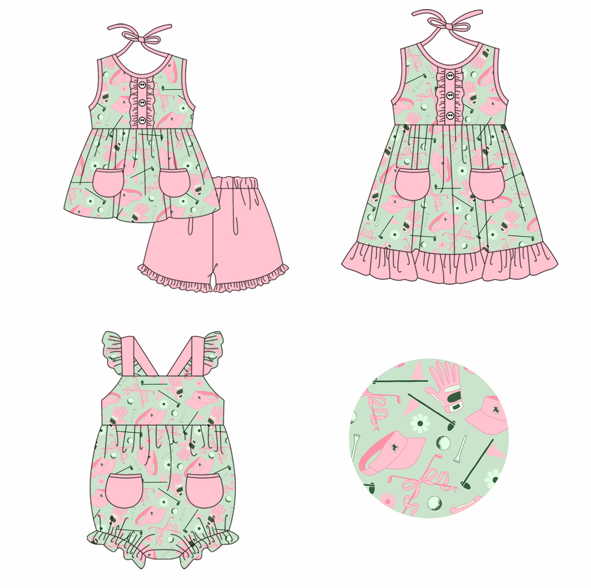 Baby Girl Golf Bows Sibling Romper Dress Clothes Set ( Moq 5 Each Design ) 11.26