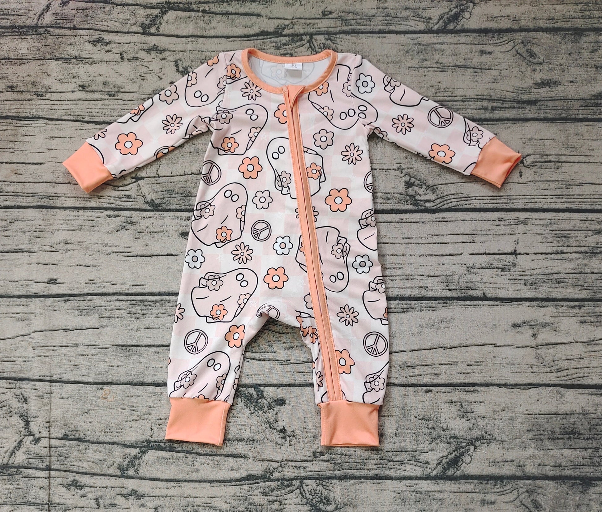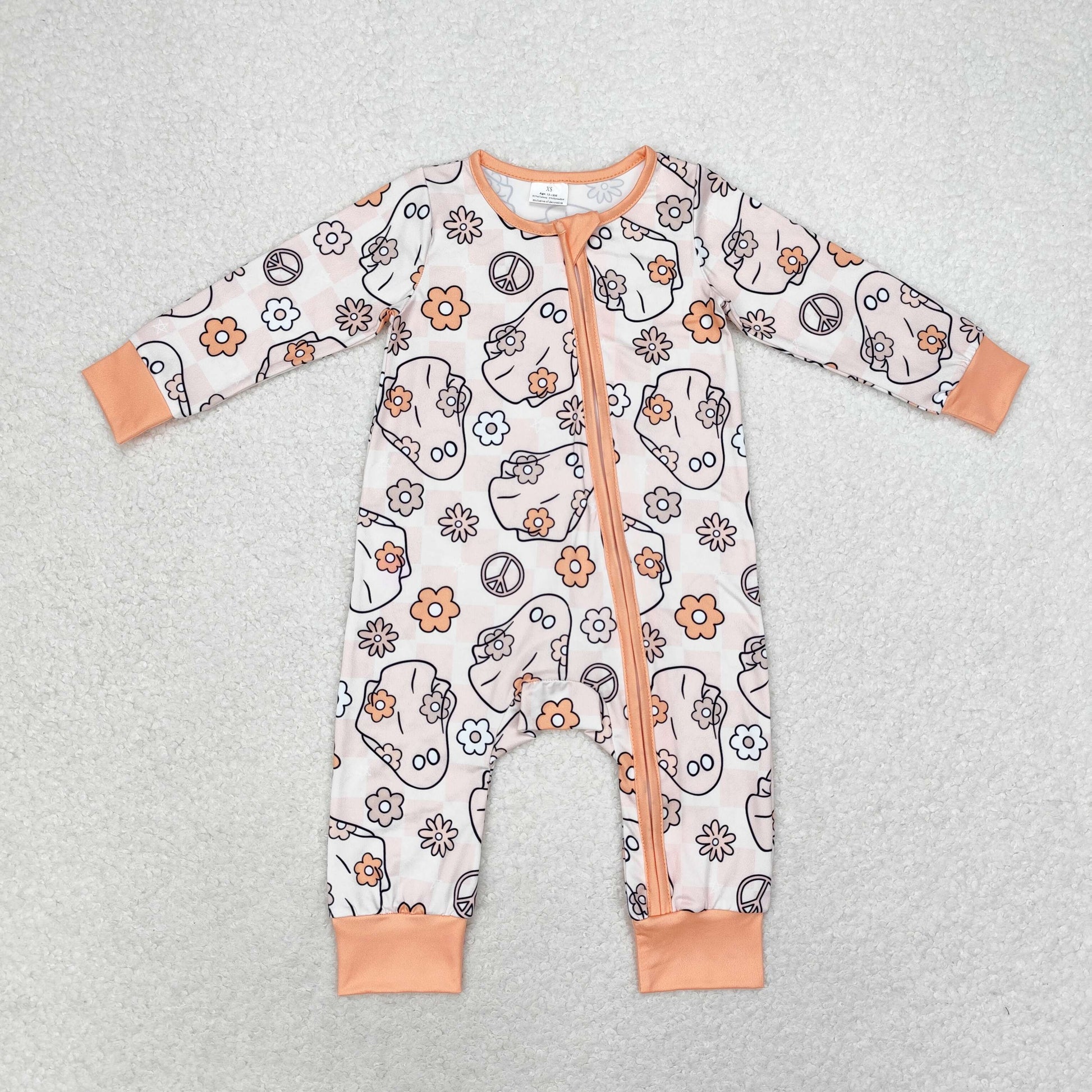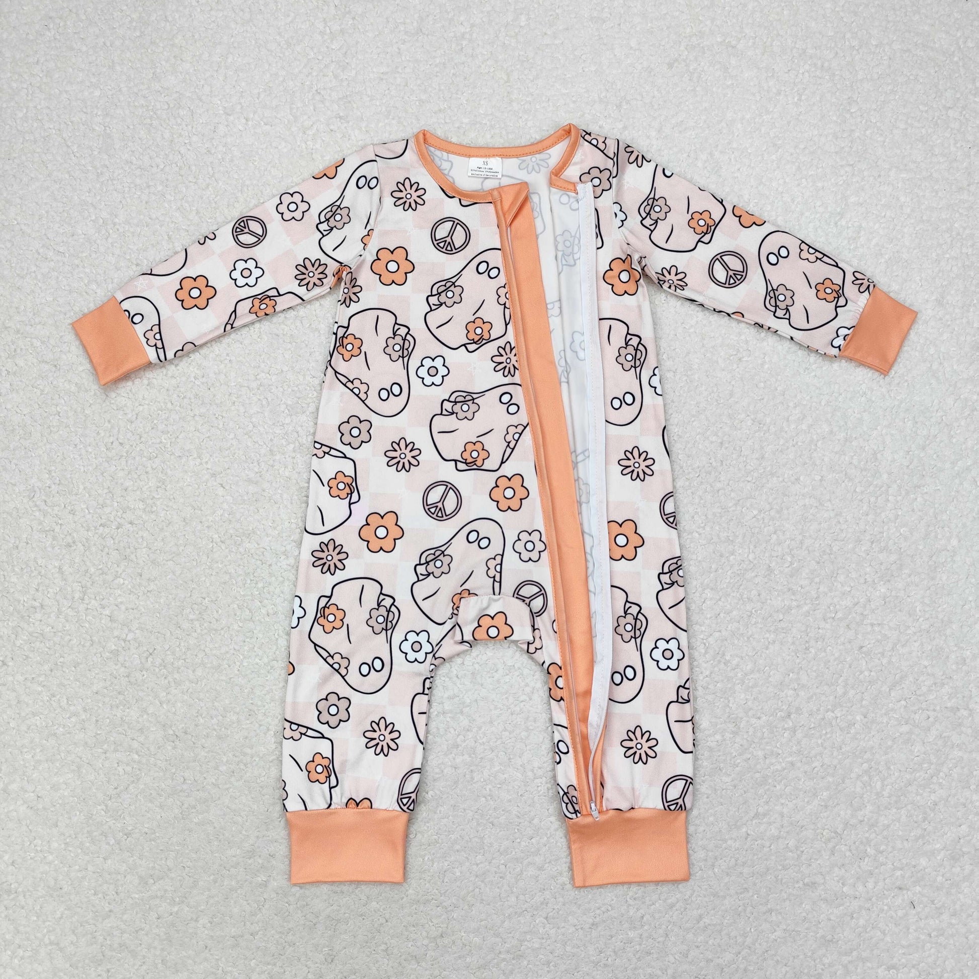 Baby Girl Halloween Flowers Ghost Long Sleeves Zipper Romper
