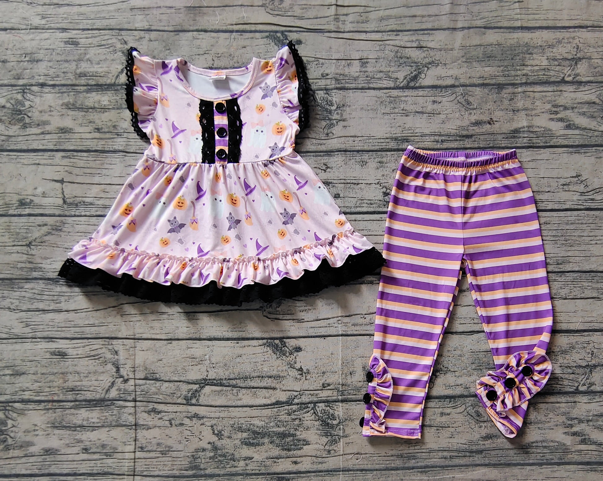 Baby Girl Halloween Pumpkin Bats Tunic Legging Clothes Set
