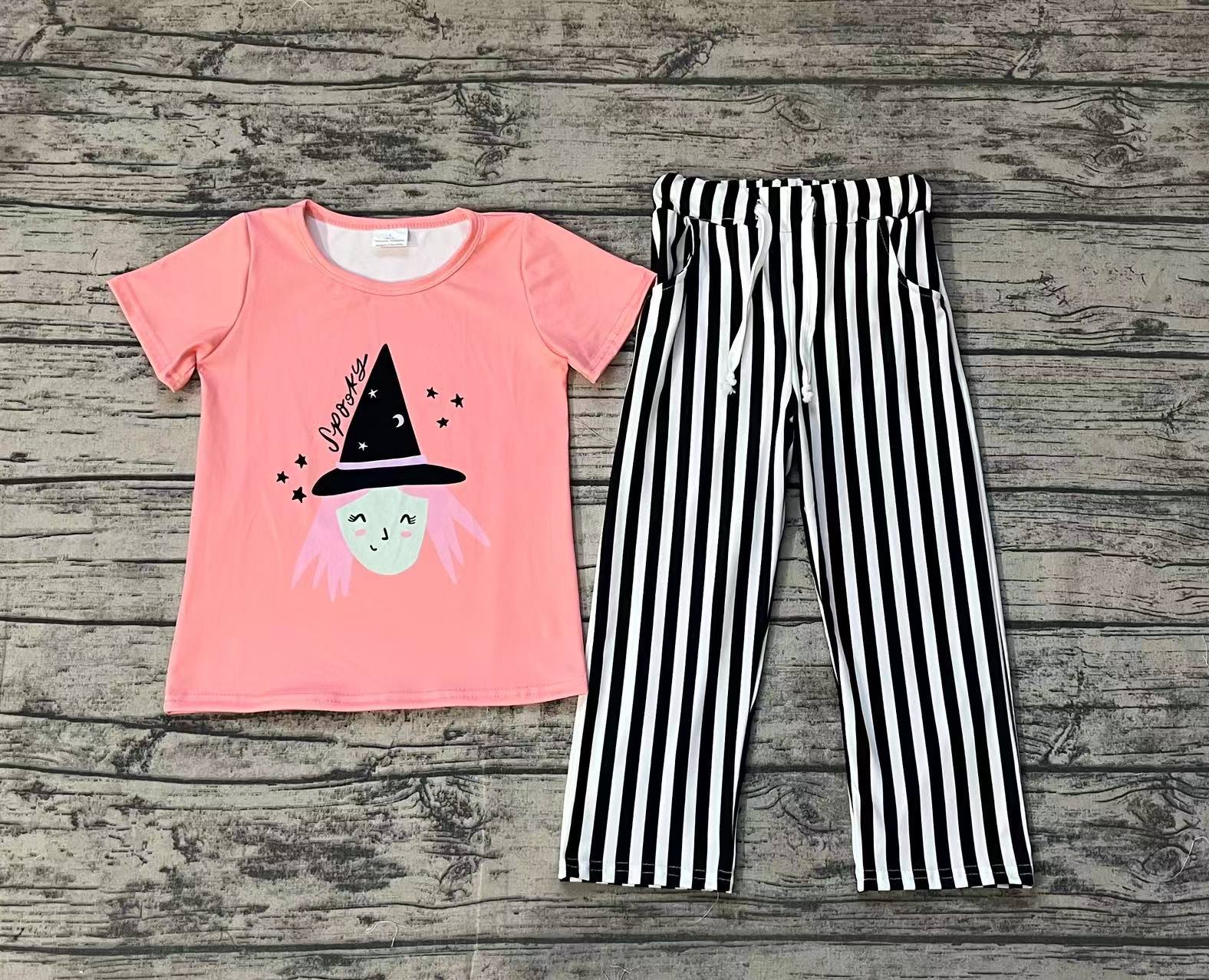 Baby Girl Halloween Shirt Black Stripes Pants Set
