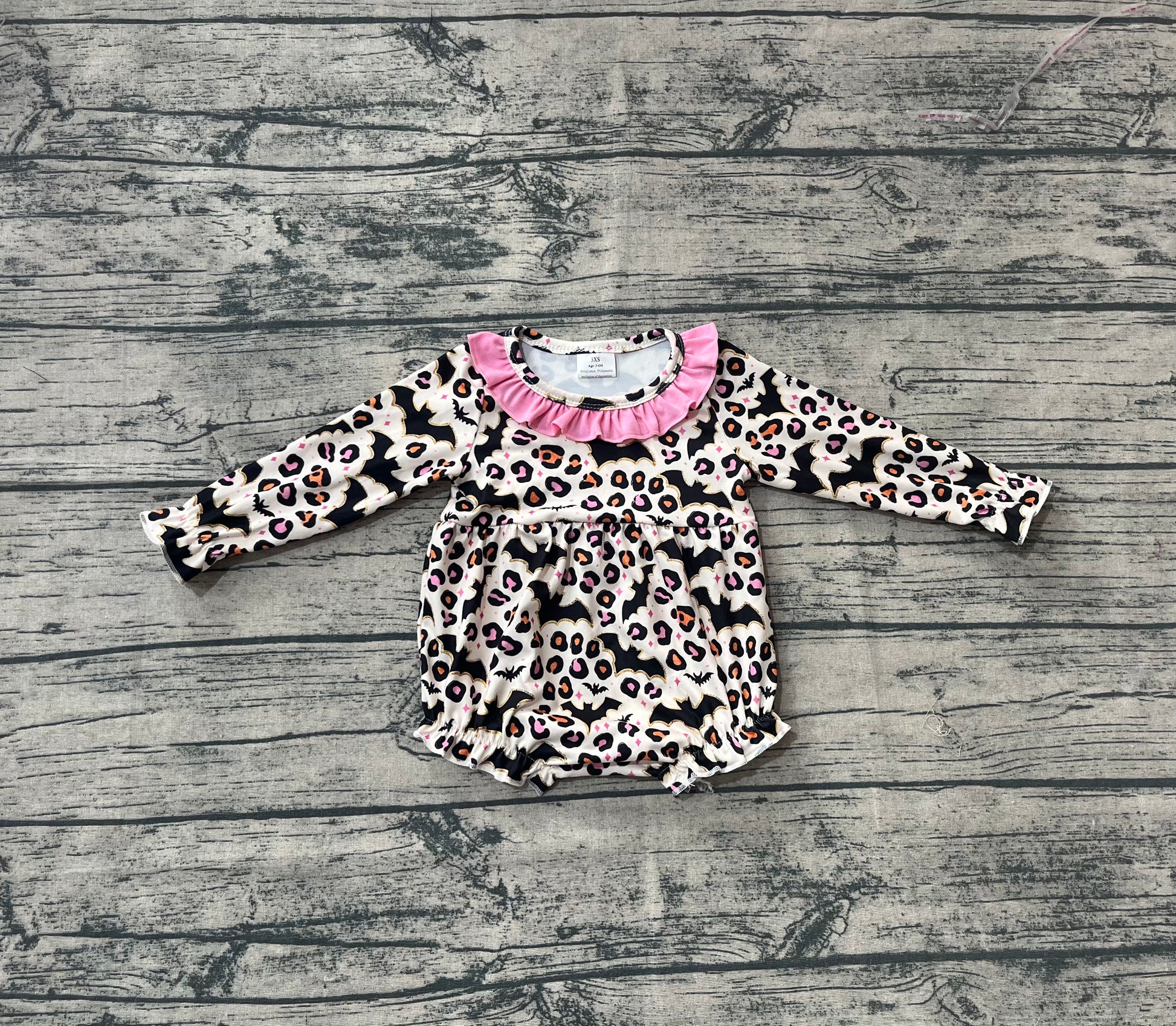 Baby Girl Infant Long Sleeves Bats Leopard Halloween Bubble Romper RTS