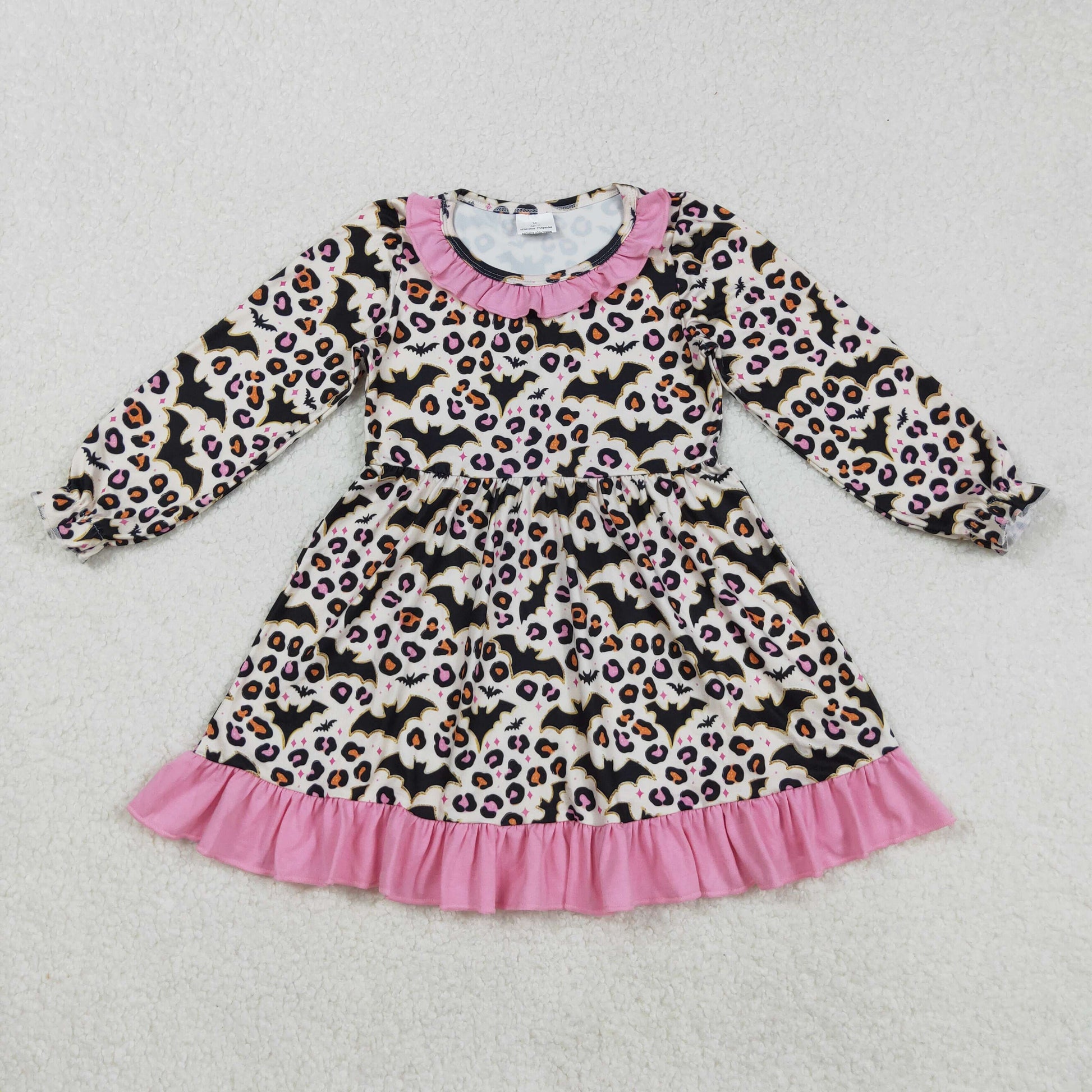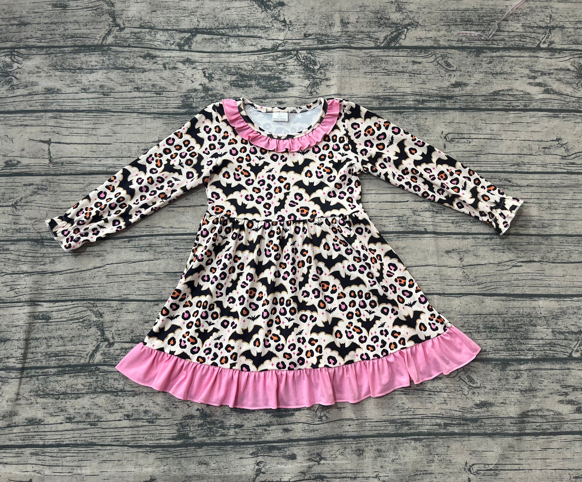 Baby Girl Infant Long Sleeves Bats Leopard Halloween Ruffle Dress RTS