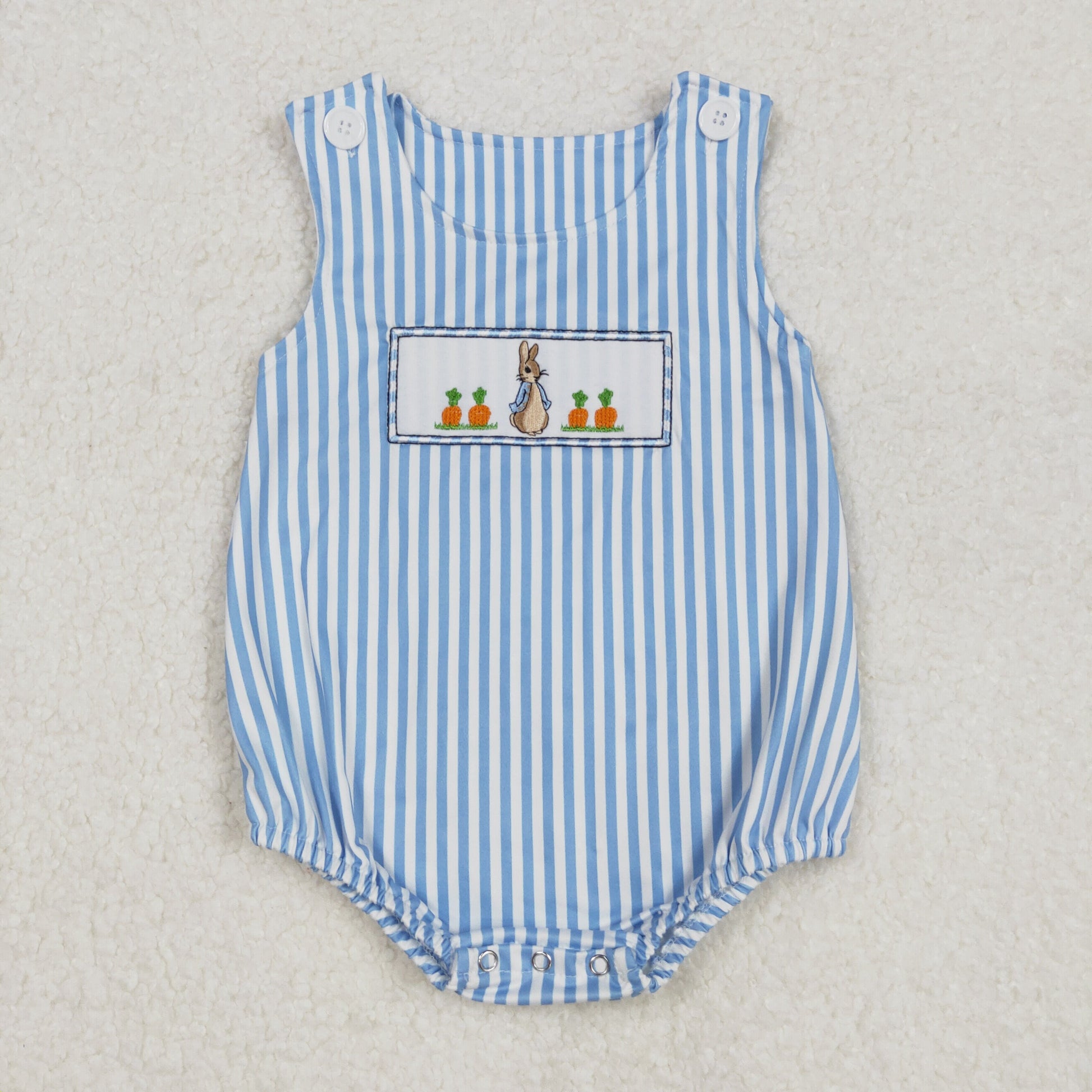 Baby Girl Infant Short Sleeves Embroidery Easter Rabbit Carrot Bubble Pink Romper RTS