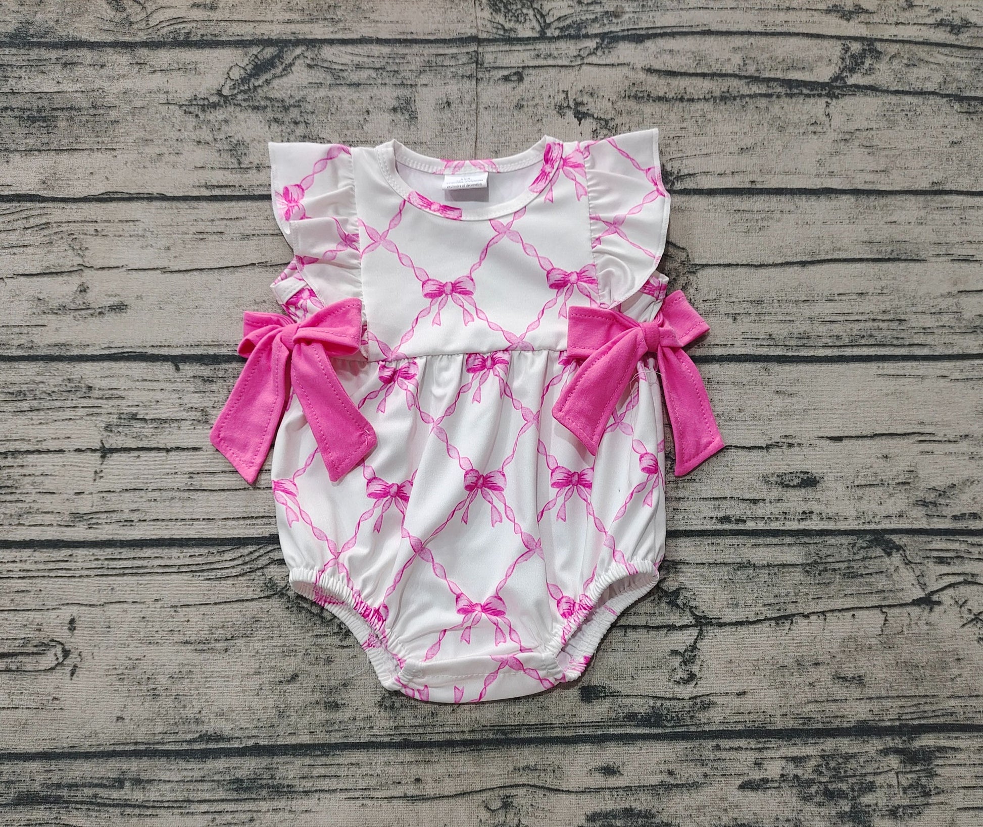 Baby Girl Infant Short Sleeves Pink Bows Bubble Romper