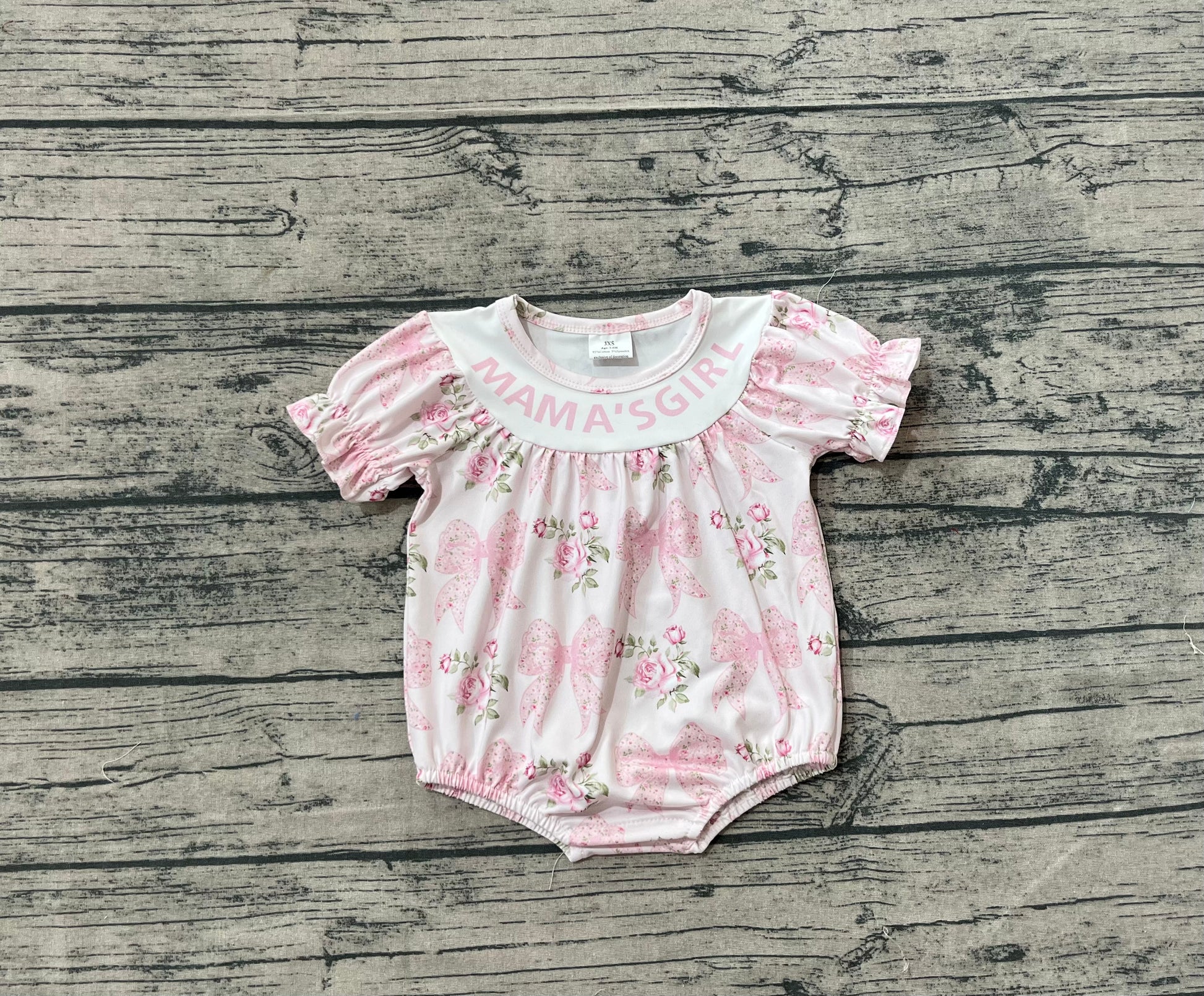 Baby Girl Infant Short Sleeves Pink Bows Flower Bubble Romper RTS